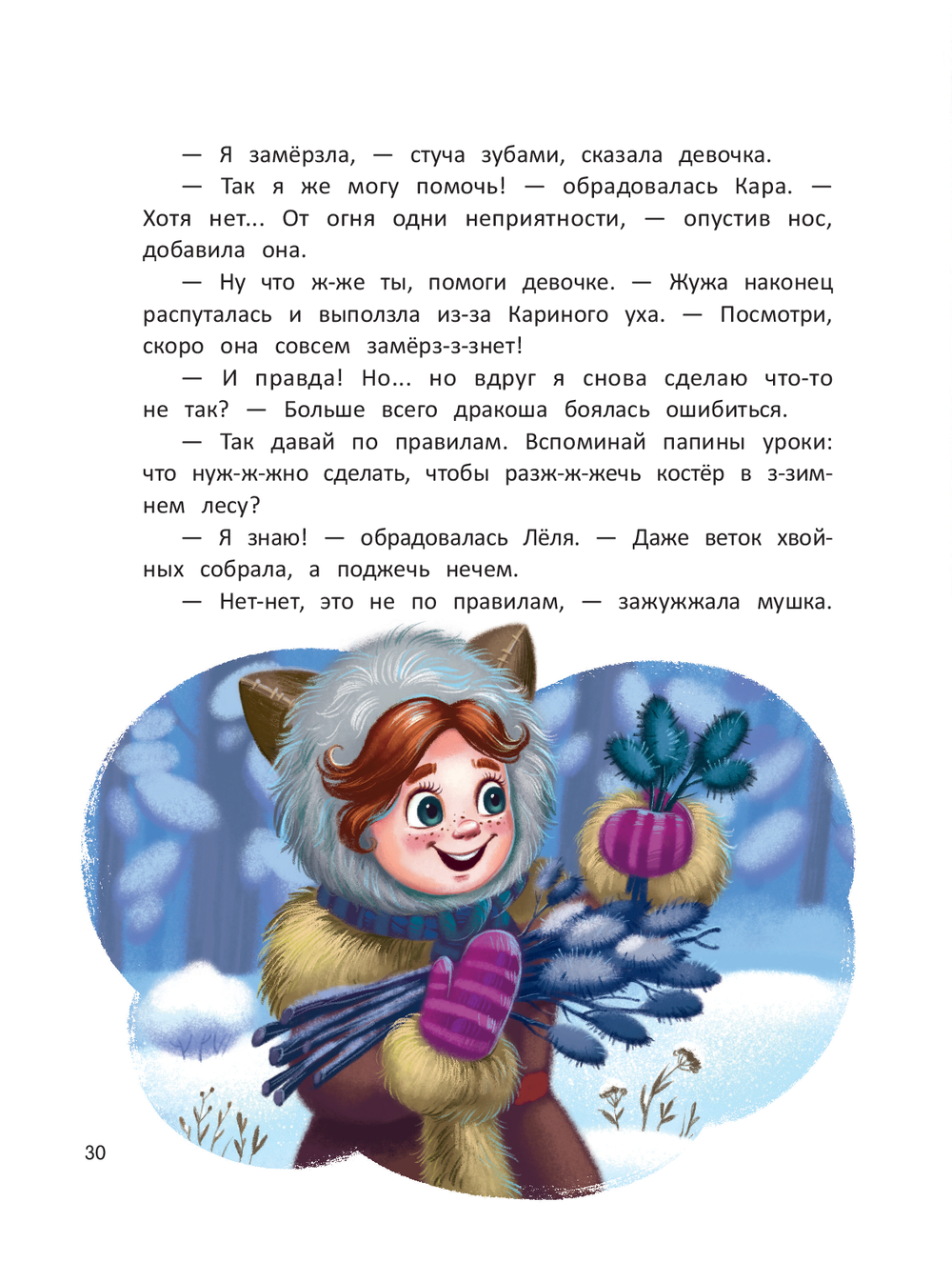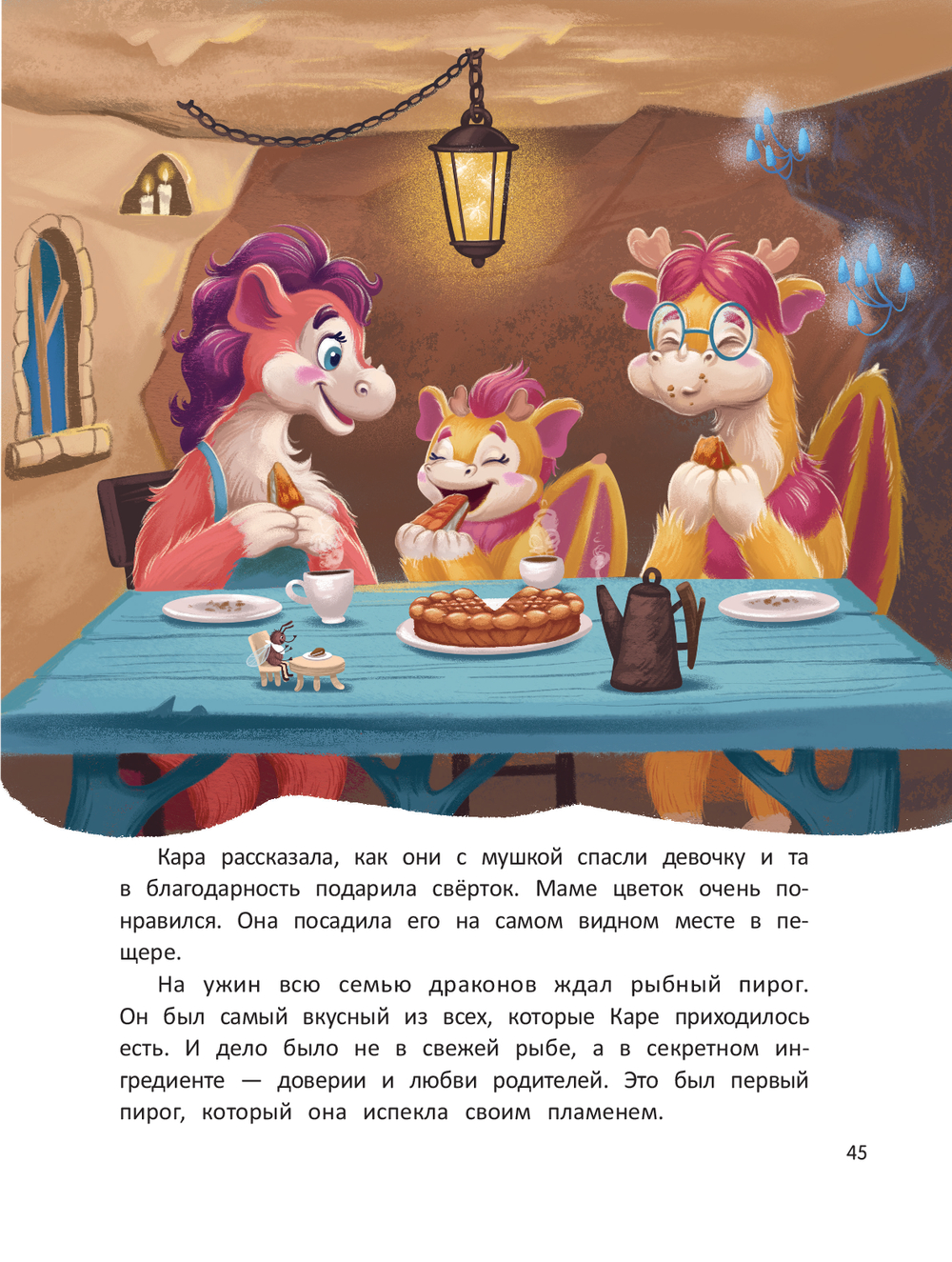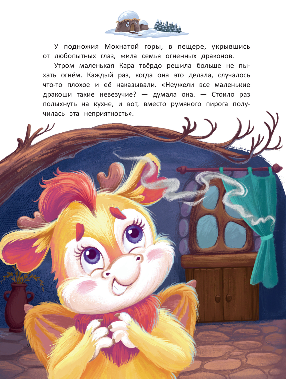 Трогательная сказка о безусловной любви между родителями и ребёнком, о важности принятия себя и вере в свои силы. Это история про маленькую дракошу Кару, у которой всё идёт не так, как ей бы хотелось: сначала она случайно спалила любимый мамин цветок, потом превратила в уголёк пирог и испортила штору на кухне. Мама с папой, огненные драконы, очень недовольны... А что, если они её разлюбят?!