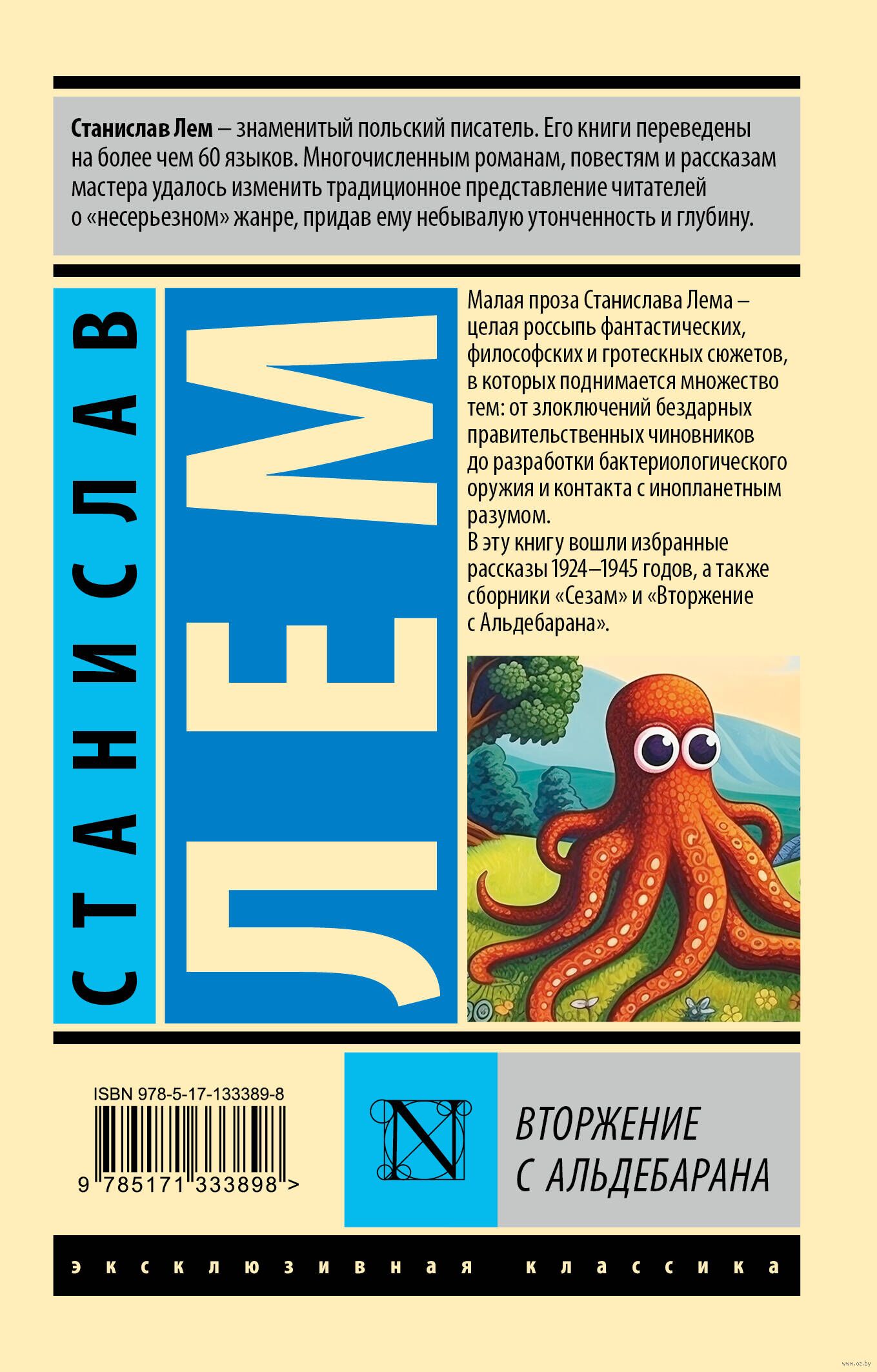 Малая проза Станислава Лема – целая россыпь фантастических, философских и гротескных сюжетов, в которых поднимается множество тем: от злоключений бездарных правительственных чиновников до разработки бактериологического оружия и контакта с инопланетным разумом. В эту книгу вошли избранные рассказы 1924 – 1945 годов, а также сборники "Сезам" и "Вторжение с Альдебарана".