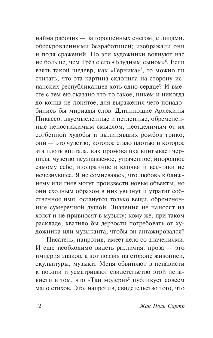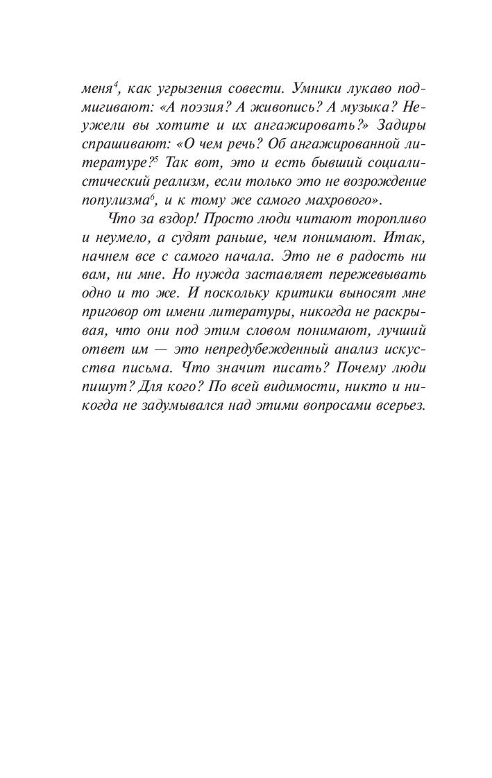 Сартр-романист и Сартр-философ объединились в фундаментальном труде, написанном в 1947 году. Это эссе стало ответом на обвинения критиков в политической ангажированности литературы и ее уходе от высокого искусства. Автор пытается ответить на важнейшие для писателя вопросы: Что значит писать? Почему люди пишут? Для кого люди пишут?