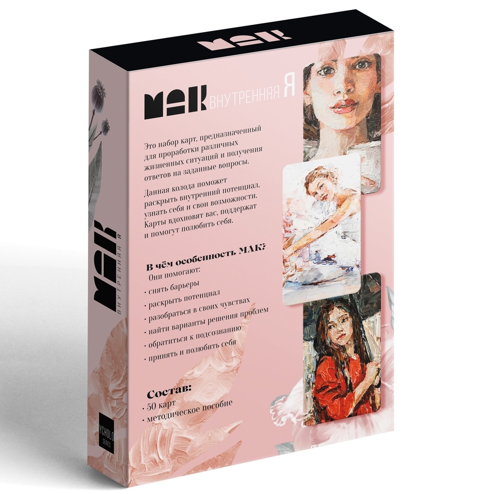 Метафорические ассоциативные карты (МАК) – это набор картинок, которые помогут заглянуть вглубь подсознания и получить ответы на интересующие вопросы. «Внутренняя Я» – это колода о принятии себя и поиске жизненного пути, предназначенная для девушек и женщин.