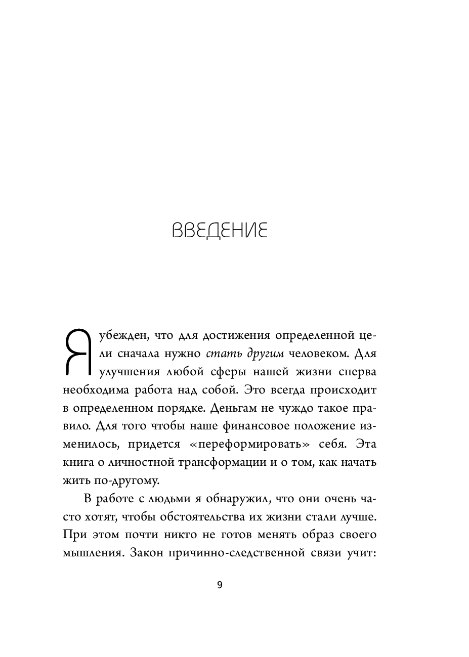 В первой части мы рассмотрим: как и почему возникают проблемы, каковы препятствия на пути к финансовой свободе, что такое финансовый интеллект. Вы узнаете о трех моделях получения дохода и научитесь говорить на языке изобилия. Вы откроете для себя девятое чудо света: пассивный доход и, наконец, взломаете Денежный код.