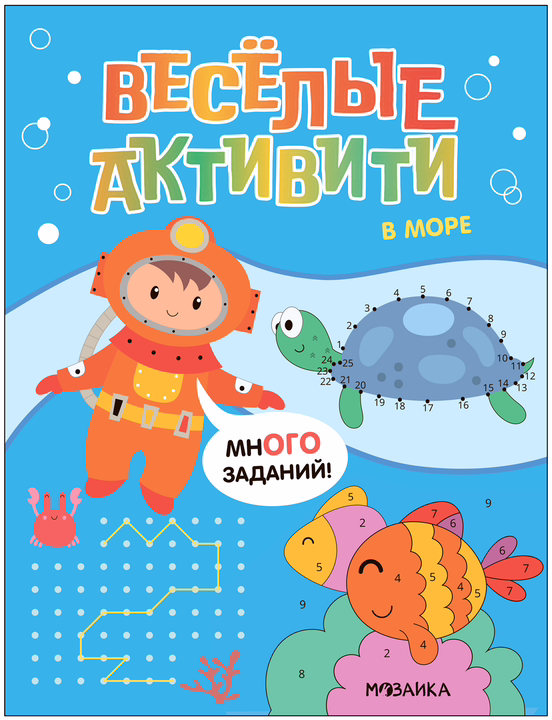В книге "В море" серии "Веселые активити" очень много заданий, от двух до четырех на каждой страничке.