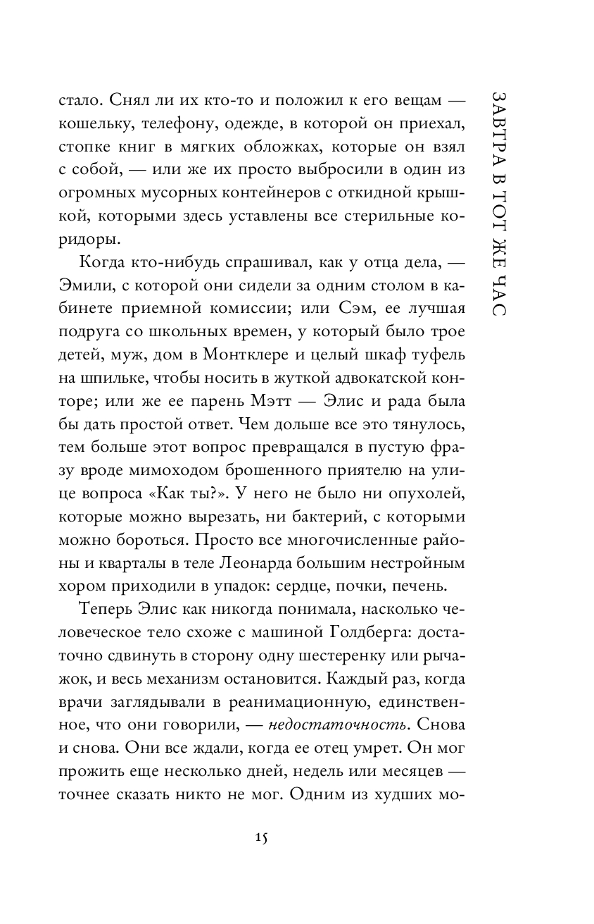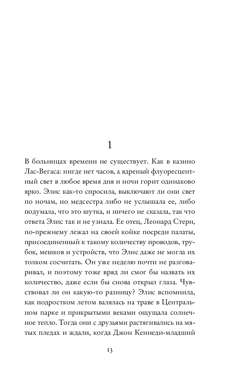 Элис без пяти минут сорок. Она живет свою неприметную жизнь и работает в выпендрежной школе Верхнего Вест-сайда, куда в свое время ходила сама, благодаря славе отца – писателя-фантаста. Того самого отца, с которым она росла после развода родителей, и который теперь медленно умирает в больнице.