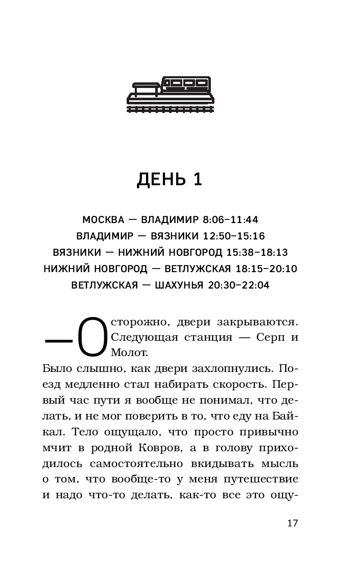 Вместе с ним вы отправитесь с Курского вокзала в удивительное путешествие к озеру Байкал через крохотные поселки и большие города.
