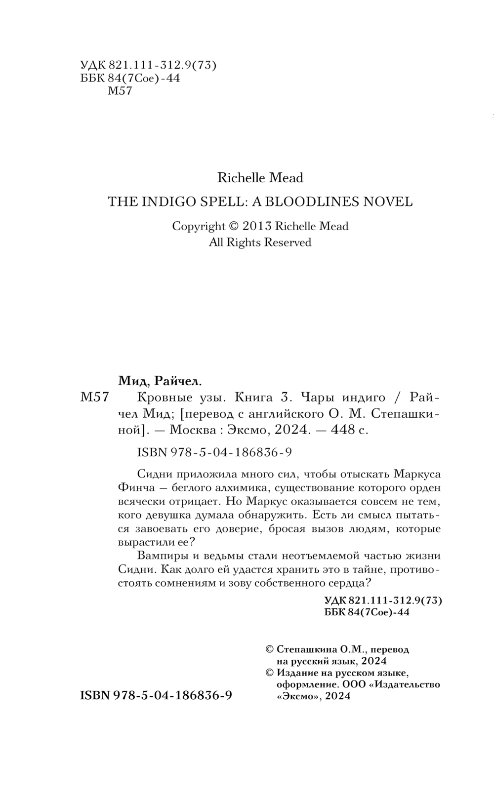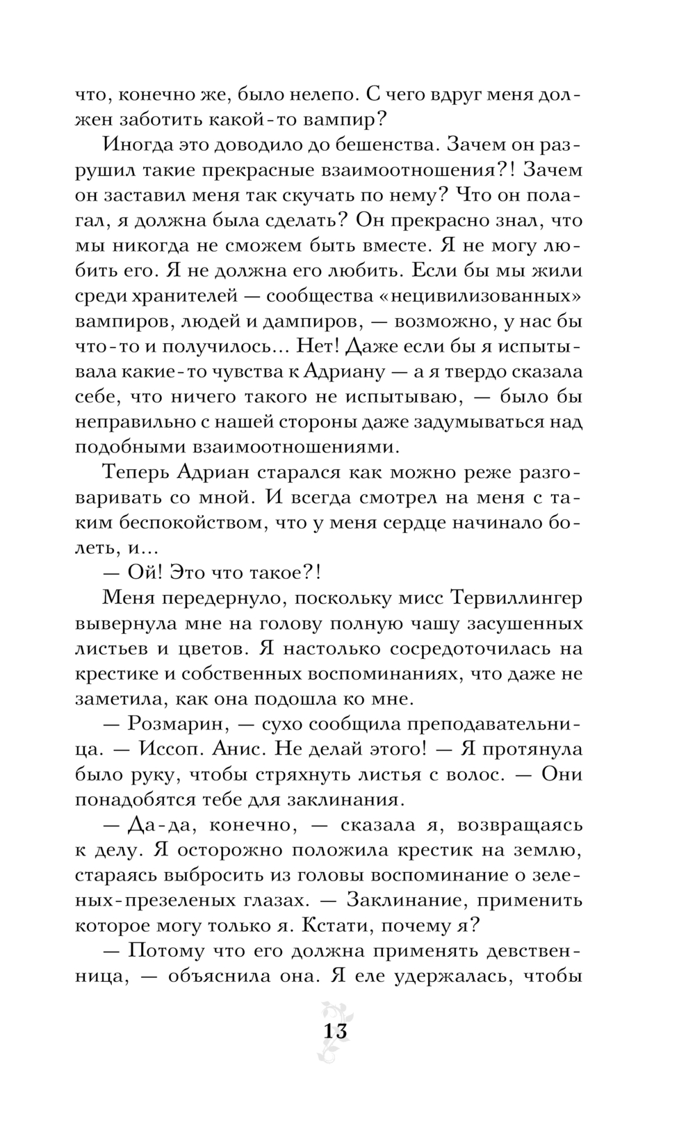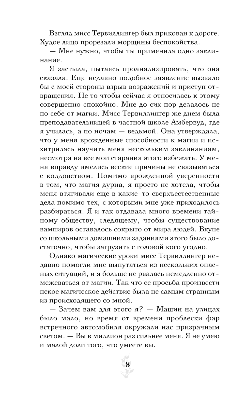 В жизни Сидни изменилось слишком многое, и это заставило ее начать сомневается в тех, кто управляет алхимиками. Может ли она позволить себе быть слепым инструментом в руках людей, которым не верит? Реальность Сидни трещит по швам: из-за близости вампиров, из-за внезапного признания Адриана, из-за проникающей в жизнь магии. Ведь пытаться отрицать существование ведьм можно, но только не когда одна из них охотится за тобой.