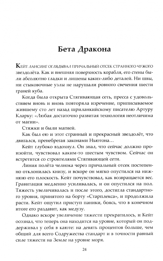 Вот уже почти двадцать лет космические исследования стремительно развиваются, и устанавливаются новые контакты с внеземными разумными существами. Все это благодаря цепочке загадочных искусственно созданных межпространственных стяжек. Никто не знает, кто создал эти межзвездные порталы, но они сделали дальние уголки космоса легкодоступными. Командир огромного исследовательского звездолета "Старплекс" Кейт Лансинг считает, что космос стал даже слишком легкодоступным. И когда через новую стяжку проходит неизвестное судно – идеально гладкое, без иллюминаторов, швов и видимых двигателей, – уже и так изрядно потрепанный в боях "Старплекс" может стать точкой преткновения, с которой начнется новая межзвездная война...