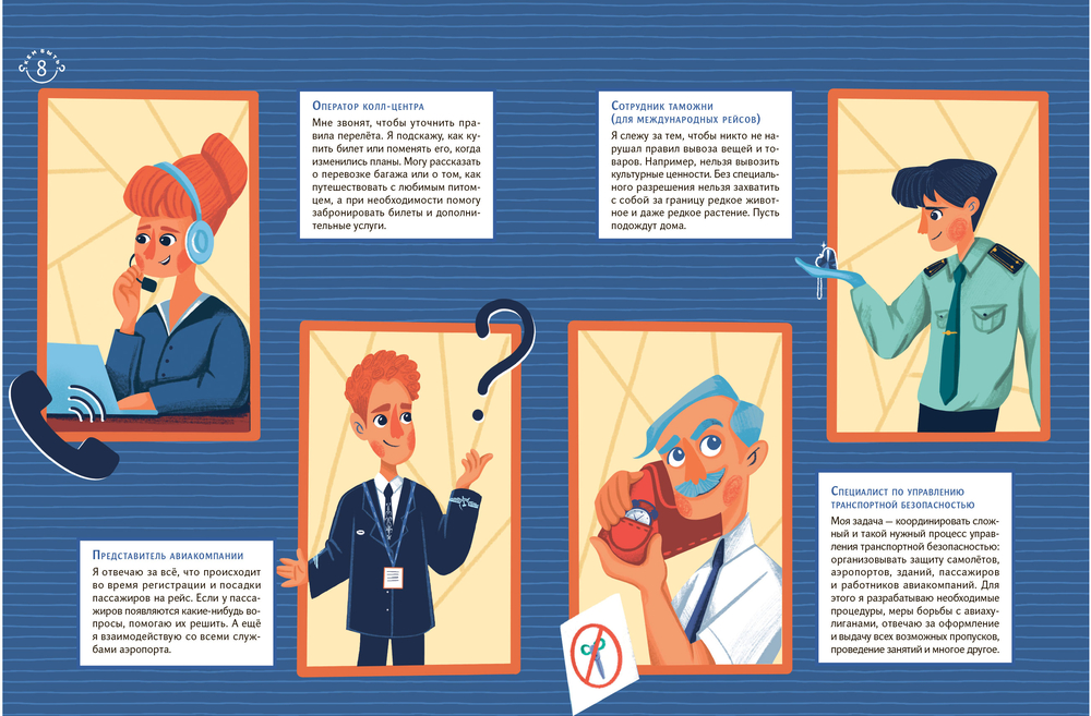 Если вы хотя бы раз в жизни путешествовали на самолёте или только мечтаете куда-нибудь полететь, вам обязательно понравится эта книга. Наша страна по площади самая большая на планете. Жители России очень много путешествуют, и почти в каждом крупном городе есть свой аэропорт. Самолёт – самый быстрый и самый безопасный транспорт в мире. Старейшая и крупнейшая авиакомпания России – Аэрофлот. На примере этой компании книга рассказывает, как всё работает в авиации, какие тут бывают профессии, как и где трудятся работники воздушного транспорта.