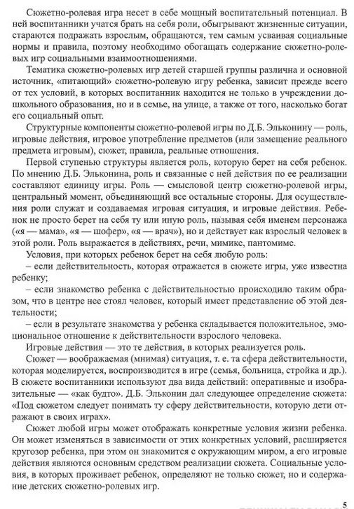 Пособие соответствует содержанию направления "Социально-нравственное и личностное развитие" учебной программы дошкольного образования для воспитанников от 5-ти до 7-ми лет. В нем содержится примерный комплекс мероприятий по созданию условий для организации и руководству сюжетно-ролевой игрой посредством обогащения содержания сюжетных игр на основе расширения жизненного опыта, знакомства с явлениями социальной действительности и отношениями людей.