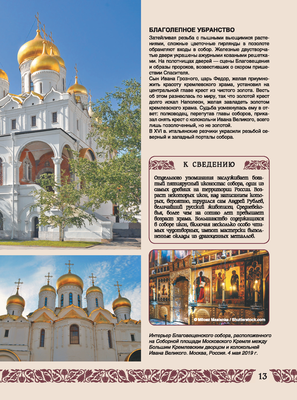 Древние белокаменные храмы – образцы домонгольского зодчества, похожие на неприступные крепости обители Русского Севера, величественные средневековые монастыри, строгие лавры, пышно отделанные кафедральные соборы, ставшие символами городов, изящные церкви и часовни, укрывшиеся за стенами древних кремлей, величавые звонницы – каждое из таких сооружений выступает хранителем богатой, более чем тысячелетней церковной традиции Святой Руси. Купола и кресты, врата и своды, иконы и фрески, драгоценные реликвии православных храмов впитали энергию веры и молитвы не одного поколения прихожан. Многие из этих святынь были поруганы, но вновь возродились в величии и славе. Многие стали знаменитыми музеями, вошли в списки культурного наследия народов Российской Федерации и Всемирного наследия ЮНЕСКО. Но главное, каждый из таких шедевров – дом Божий, корабль спасения в море житейском и оплот духовности всего общества. На страницах этого уникального издания со зрелищными иллюстрациями и важными, а порой и неожиданными фактами вы приобщитесь к сокровищнице православной культуры России, к высшей Истине и Красоте, проявленной в ее церковных святынях.
