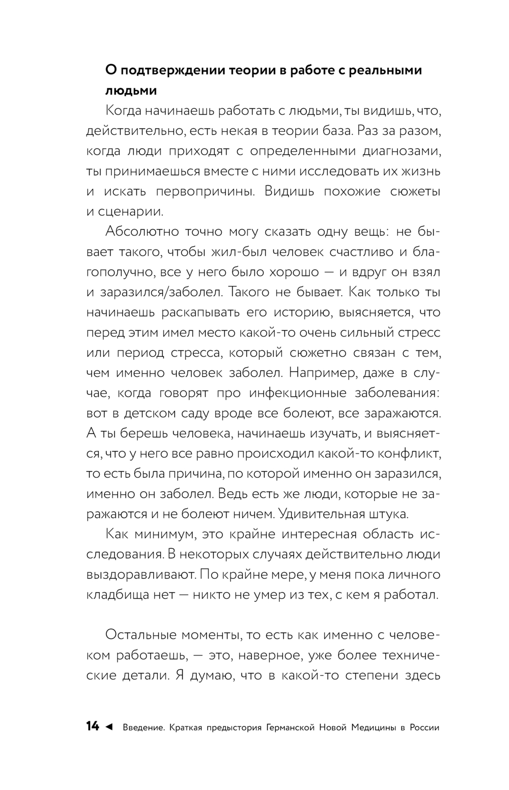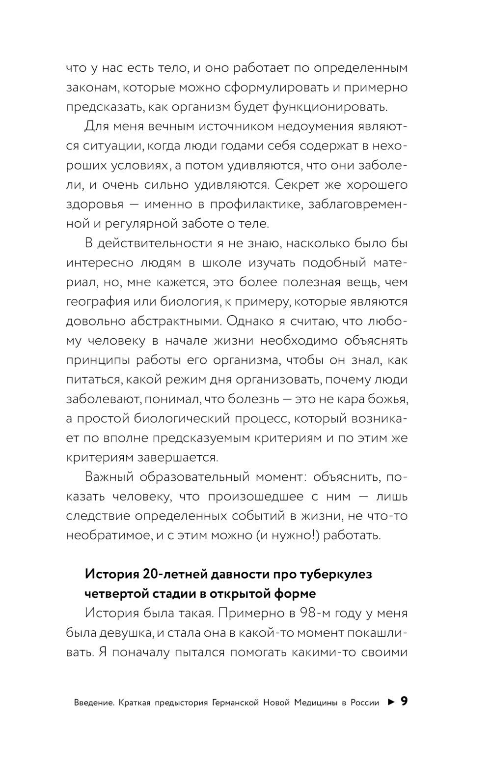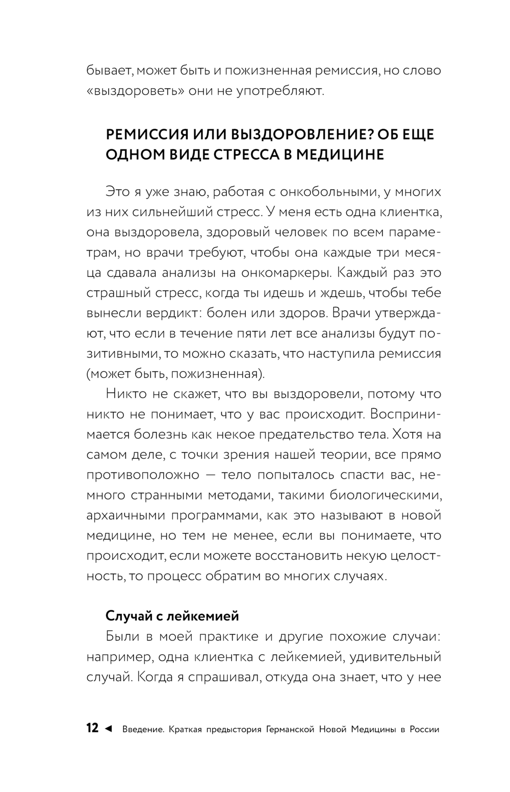 Замечательная книга! Написана понятным и доступным языком. Советую все мем, кого интересует вопрос здоровья без лекарств. Понимание того, что никакие лекарства не помогу, пока человек не придет к осознанности и пониманию своего конфликта. Благодарю за книгу.