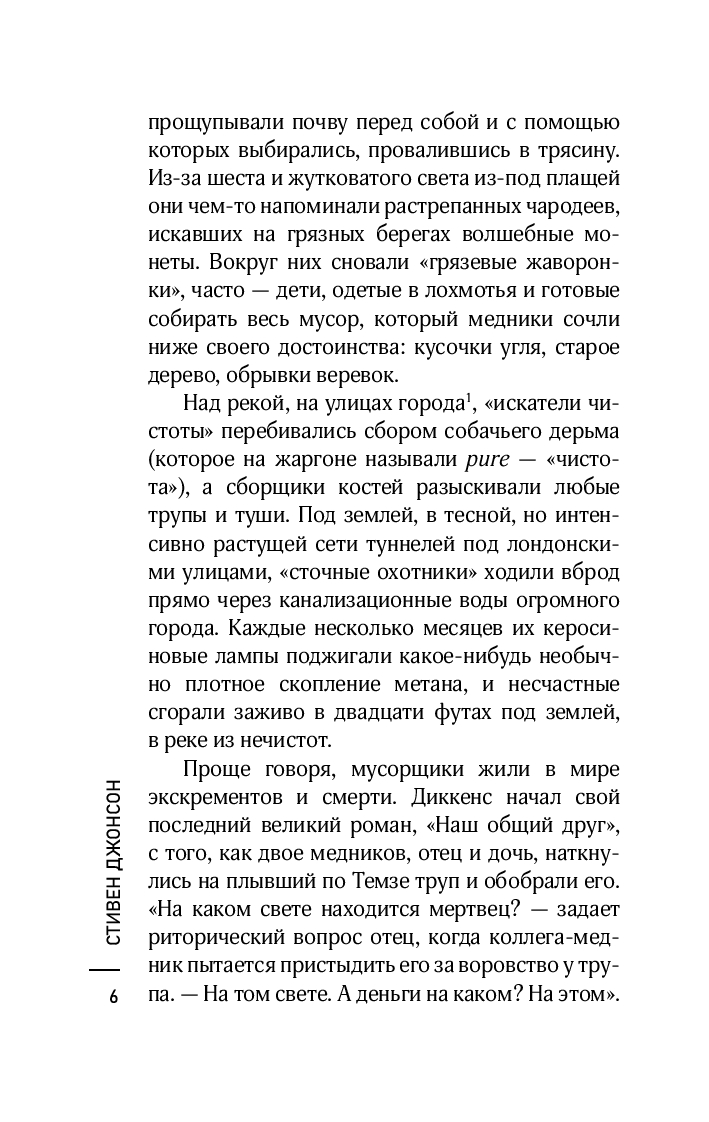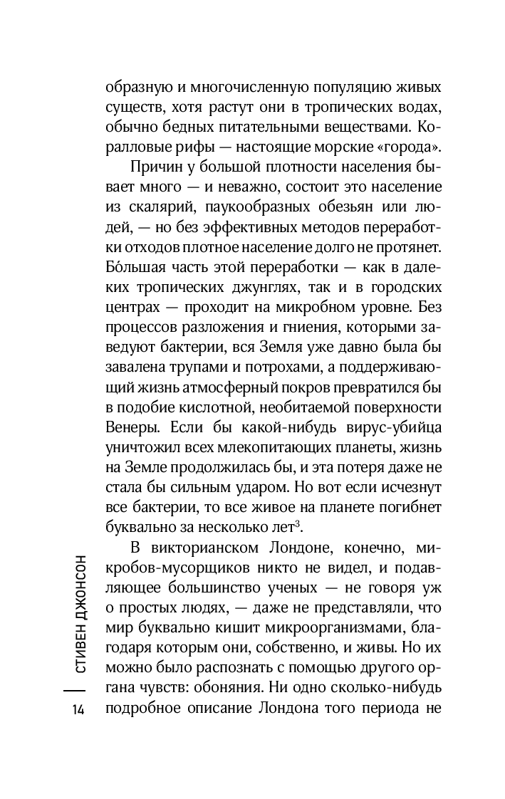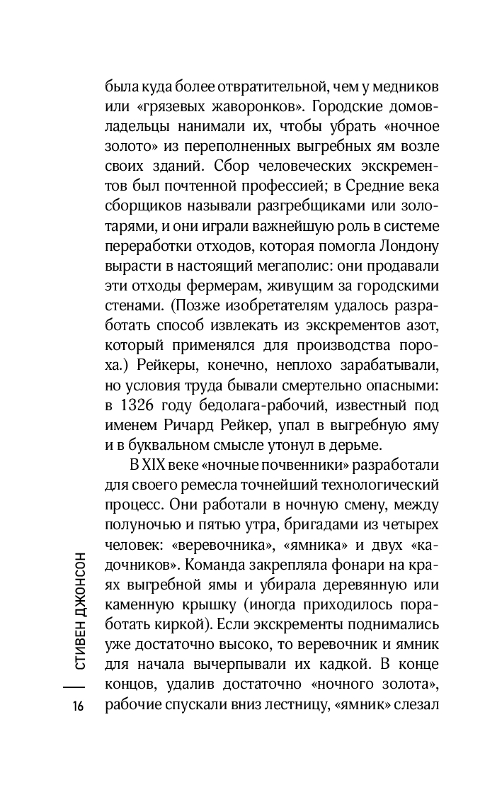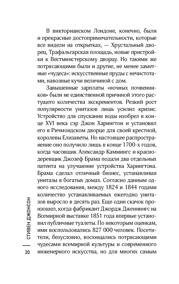 Стивен Джонсон освещает запутанные истории распространения болезней, возникновения городов и ход научных исследований, увлекая читателя в пугающее и захватывающее путешествие по Лондону конца XIX века – одному из самых развитых и передовых городов мира того времени. Рассказывая удивительную историю, он также дает мощное объяснение тому, как эпидемия холеры сформировала мир, в котором все мы живем.