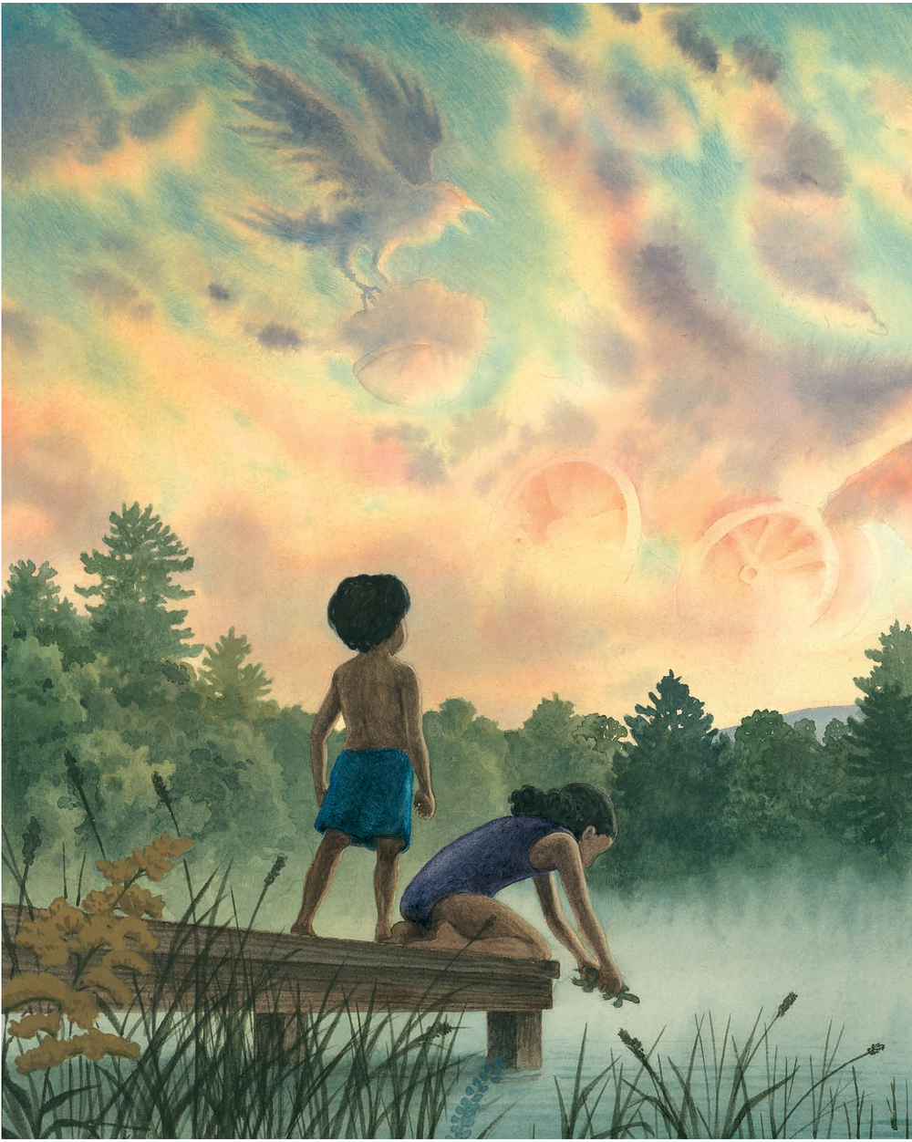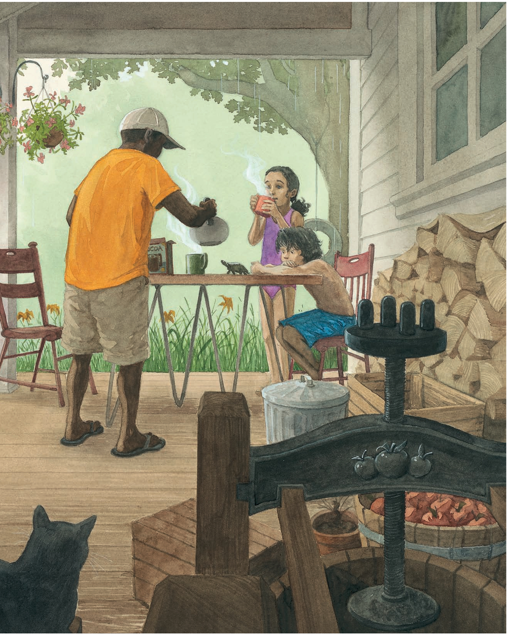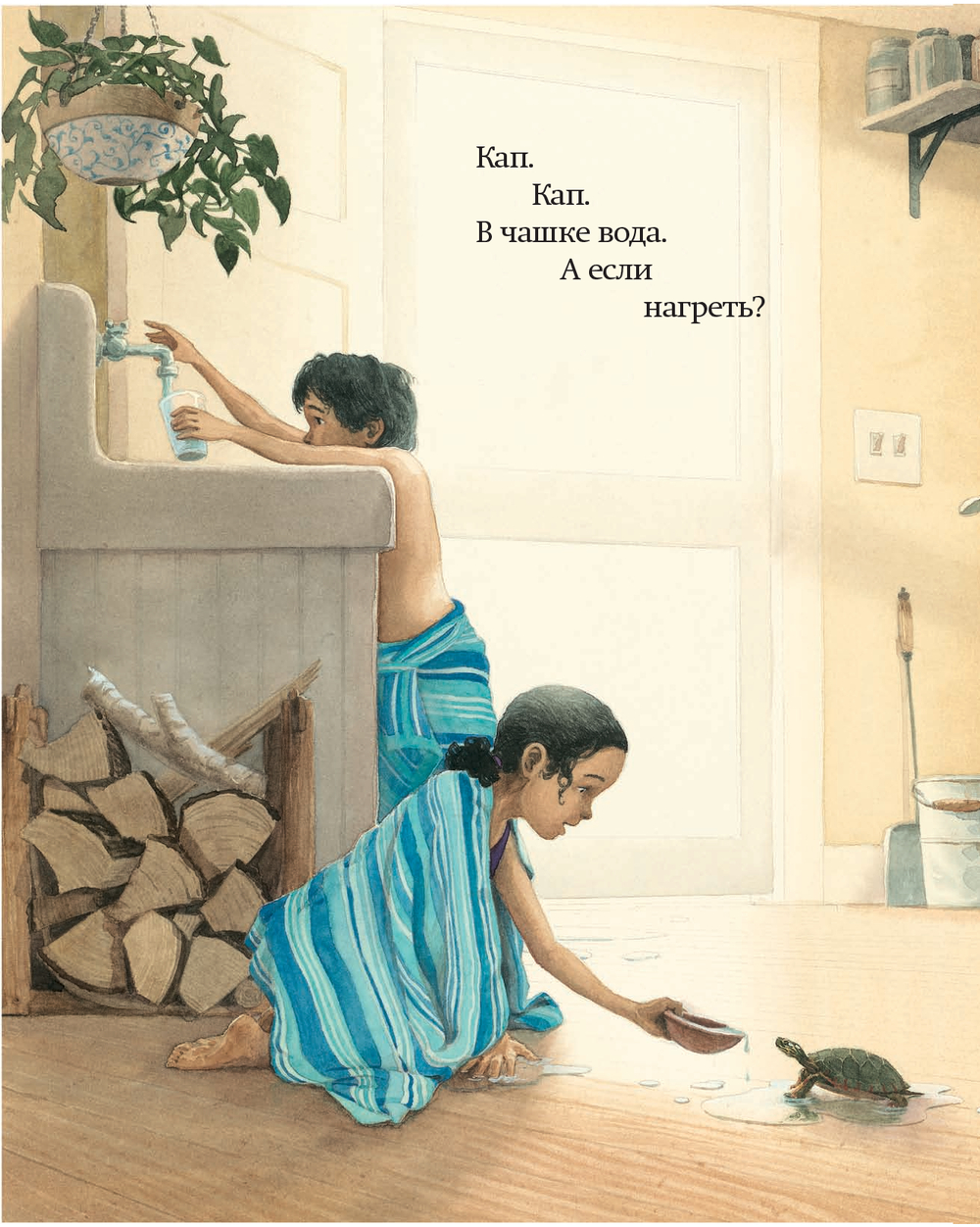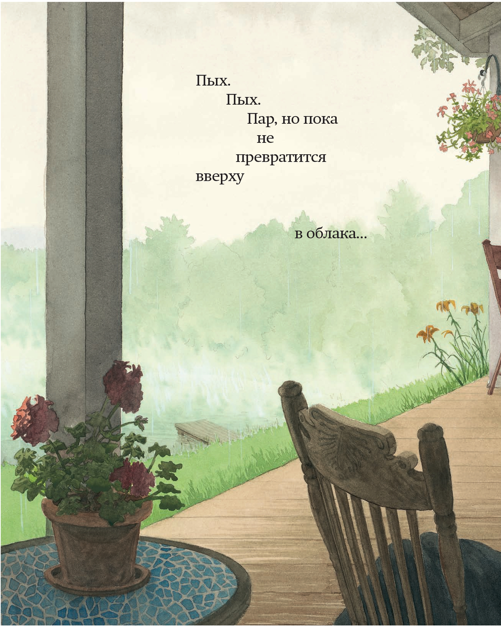 В поэтической форме идет рассказ о брате и сестре, которые в течение года наблюдают за всеми фазами круговорота воды в природе: от облаков до тумана и дождя, от снега до ручьев и яблочного сока. Читатель вовлекается в научное приключение, красиво оформленное и информативное.