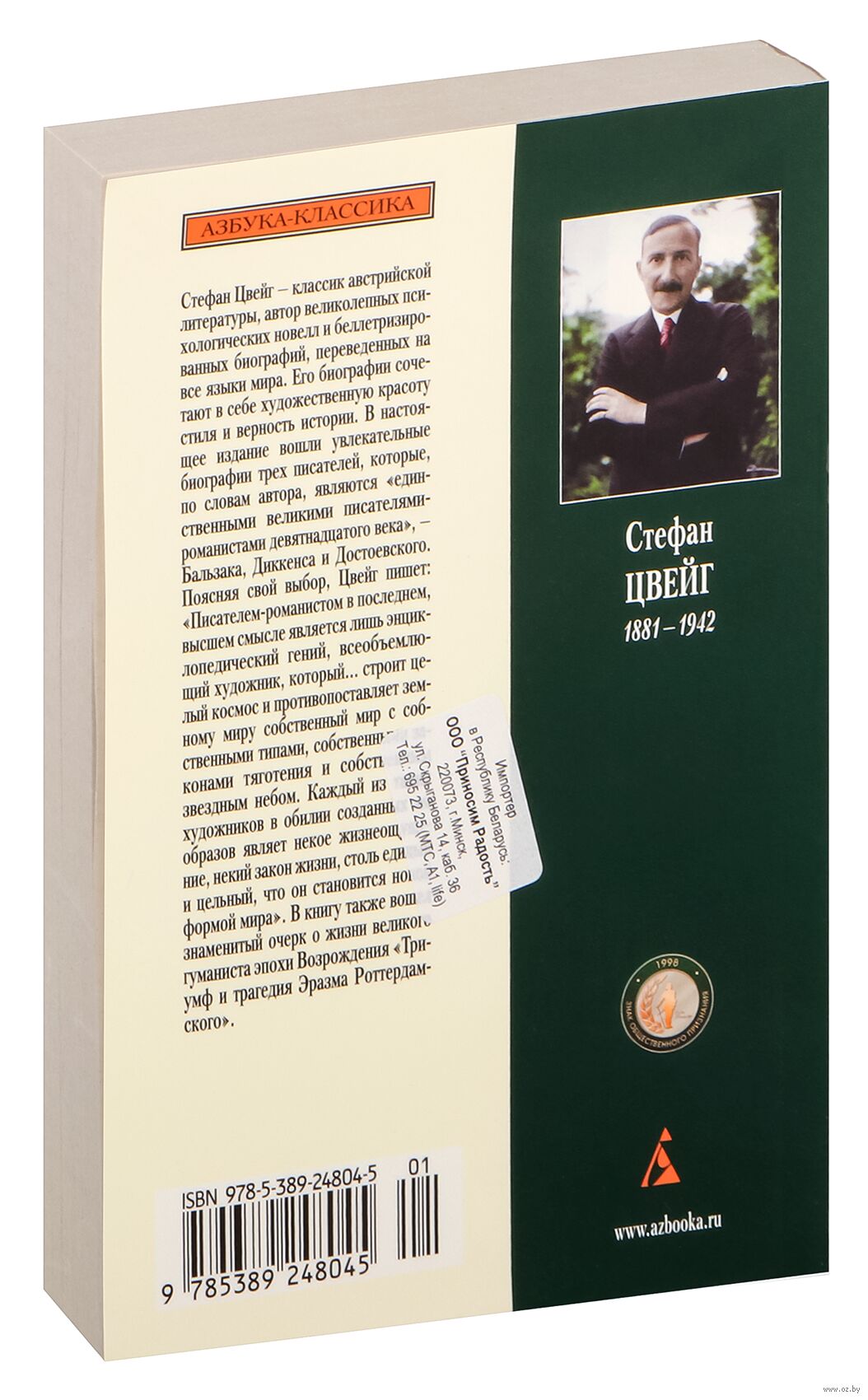 Стефан Цвейг – классик австрийской литературы, автор великолепных психологических новелл и беллетризированных биографий, переведенных на все языки мира. Его биографии сочетают в себе художественную красоту стиля и верность истории. В настоящее издание вошли увлекательные биографии трех писателей, которые, по словам автора, являются "единственными великими писателями-романистами девятнадцатого века", – Бальзака, Диккенса и Достоевского. Поясняя свой выбор, Цвейг пишет: "Писателем-романистом в последнем, высшем смысле является лишь энциклопедический гений, всеобъемлющий художник, который... строит целый космос и противопоставляет земному миру собственный мир с собственными типами, собственными законами тяготения и собственным звездным небом... Каждый из таких художников в обилии созданных им образов являет некое жизнеощущение, некий закон жизни, столь единый и цельный, что он становится новой формой мира".