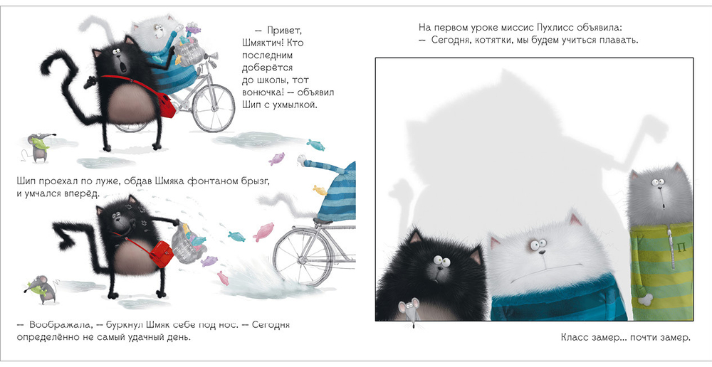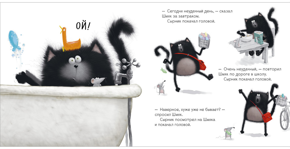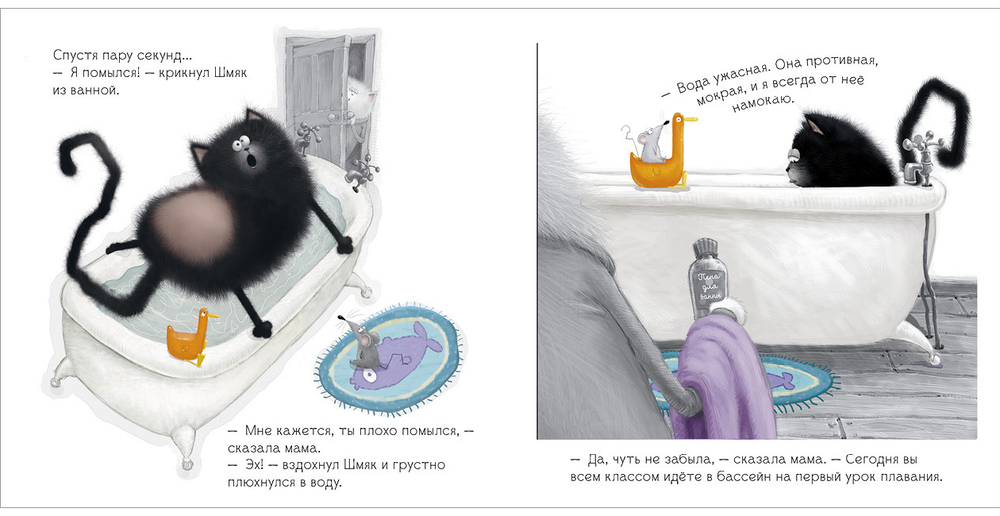 В этом сборнике вы найдёте три захватывающие истории про котёнка Шмяка и его друзей. Вы узнаете, как Шмяк встретил пингвинов, побывал в океанариуме, научился плавать и делать большой Плюх! Устраивайтесь поудобнее и наслаждайтесь чтением вместе!