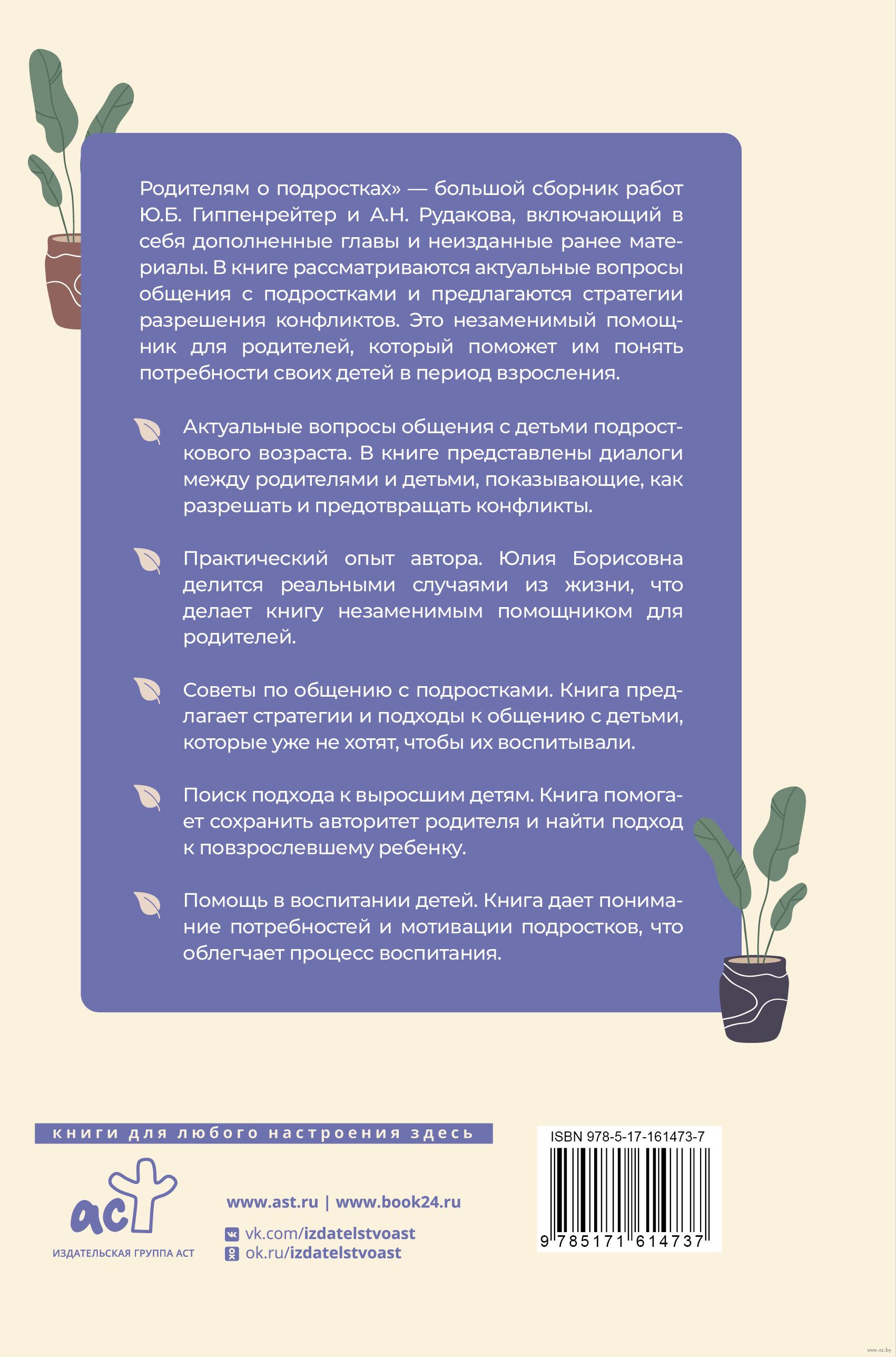 "Родителям о подростках" – большой сборник работ, включающий в себя дополненные главы и неизданные ранее материалы. В книге рассматриваются актуальные вопросы общения с подростками и предлагаются стратегии разрешения конфликтов. Это незаменимый помощник для родителей, который поможет им понять потребности своих детей в период взросления.