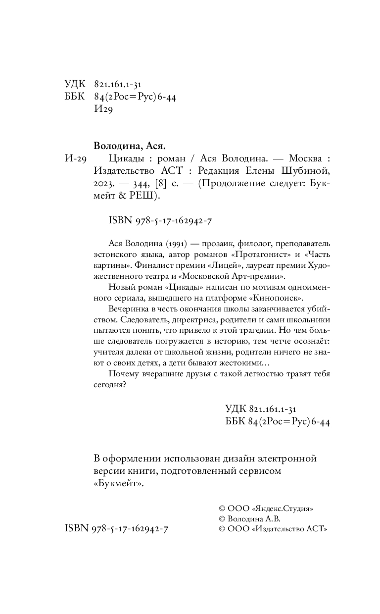 Новый роман "Цикады" написан по мотивам одноименного сериала, вышедшего на платформе "Кинопоиск".