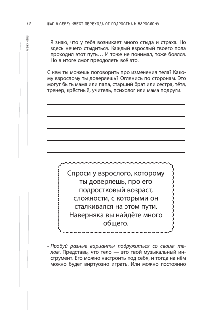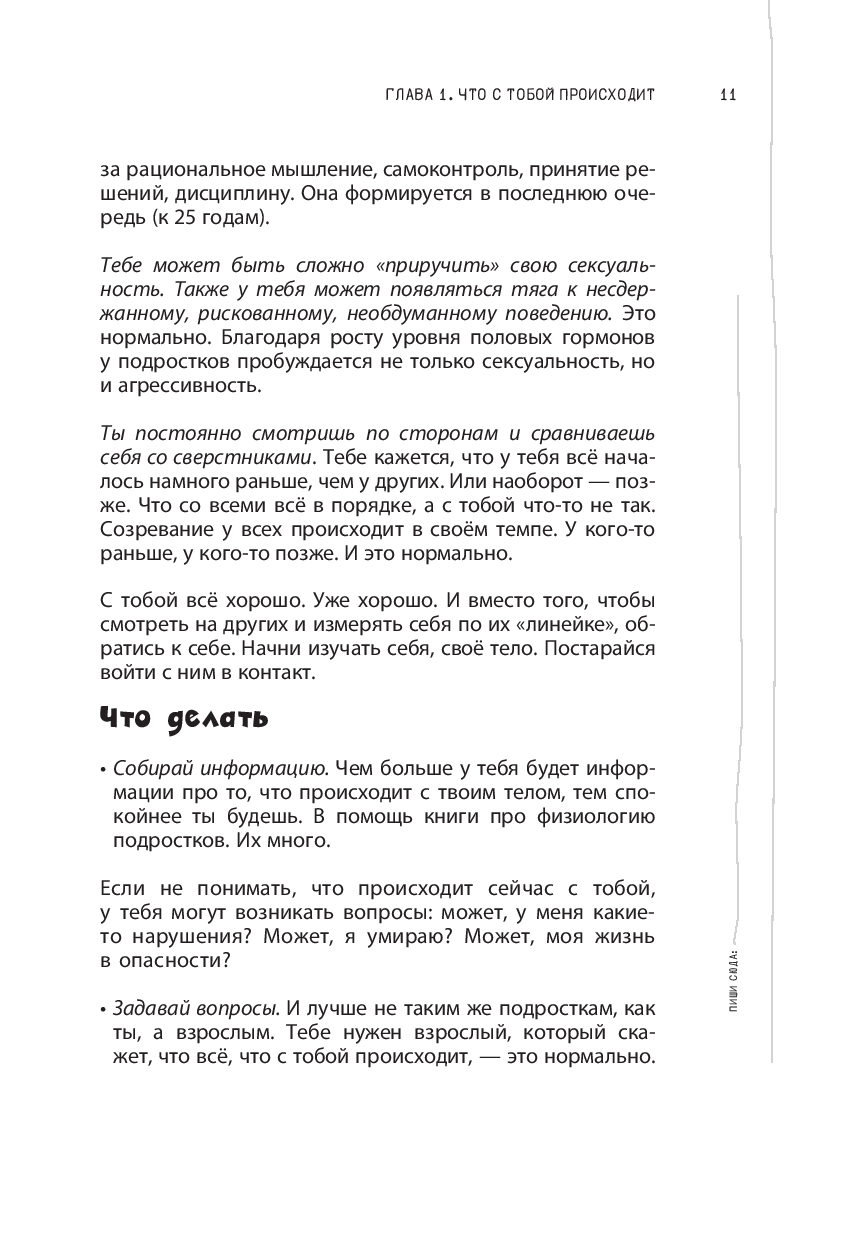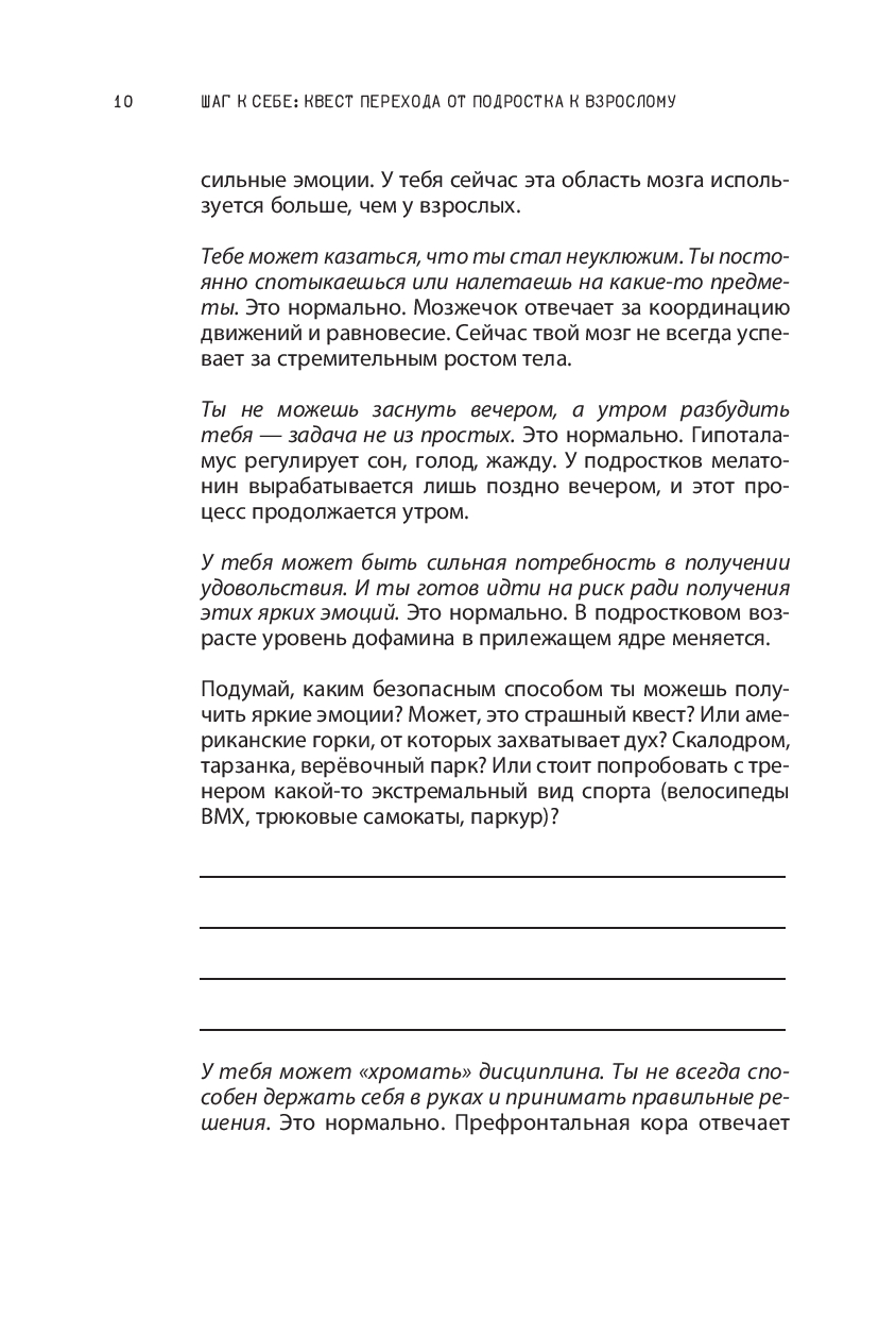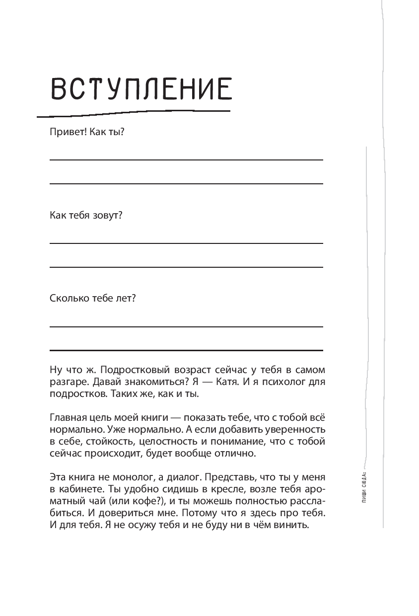 Эта книга станет твоей невидимой опорой, которая поддержит тебя, поможет лучше узнать себя, а главное, даст понять: с тобой всё нормально! Не переживай, если не умеешь справляться с трудностями подросткового возраста – книга научит тебя чётко анализировать проблемы и находить их решения. Вопросы для самоанализа, упражнения и советы помогут тебе держаться на плаву, научат лучше понимать себя и окружающих.