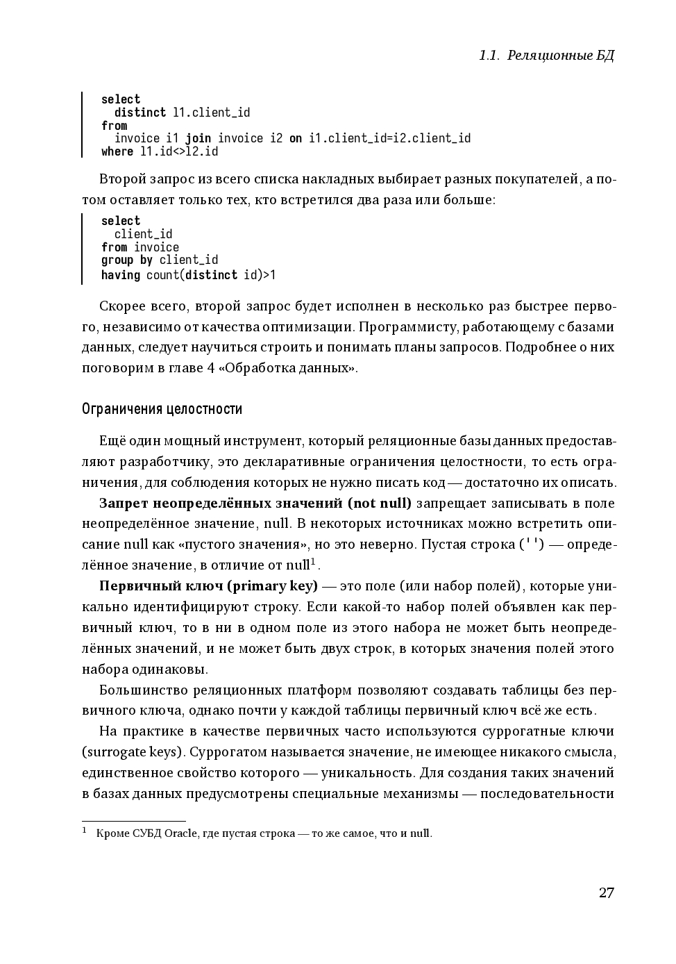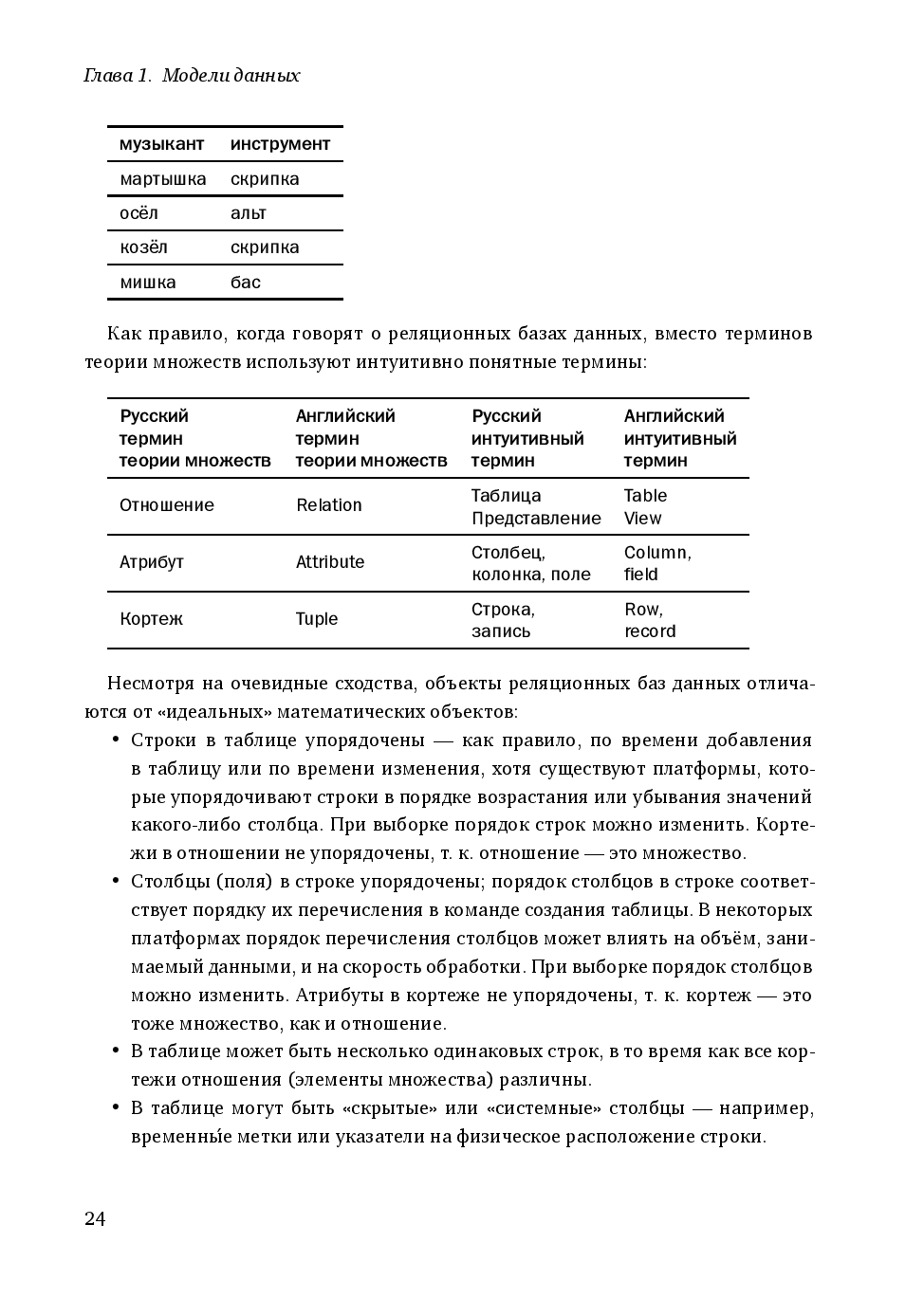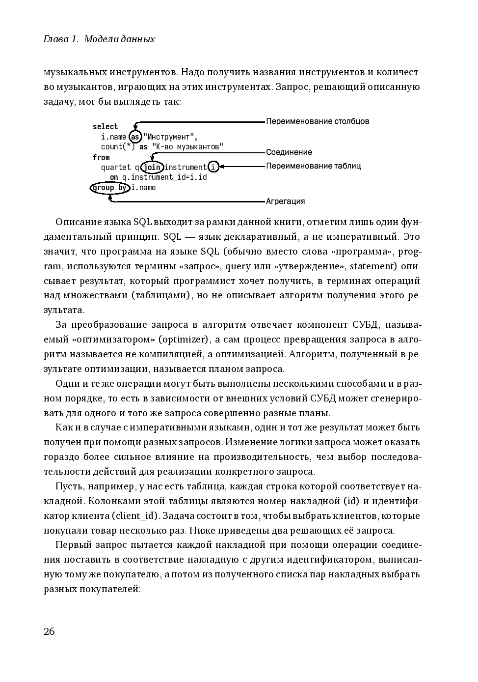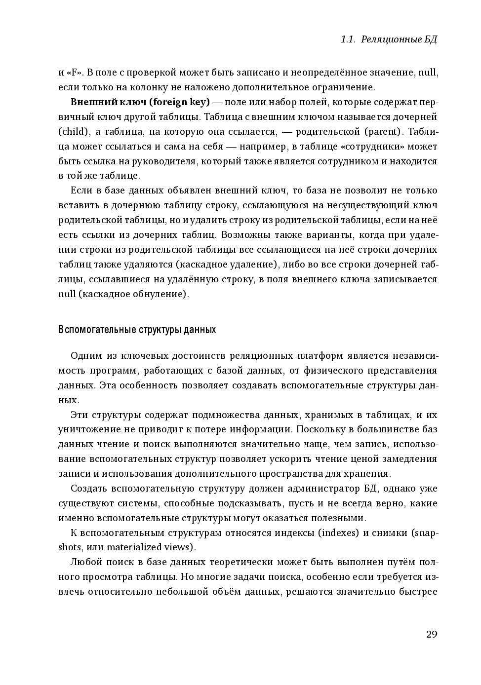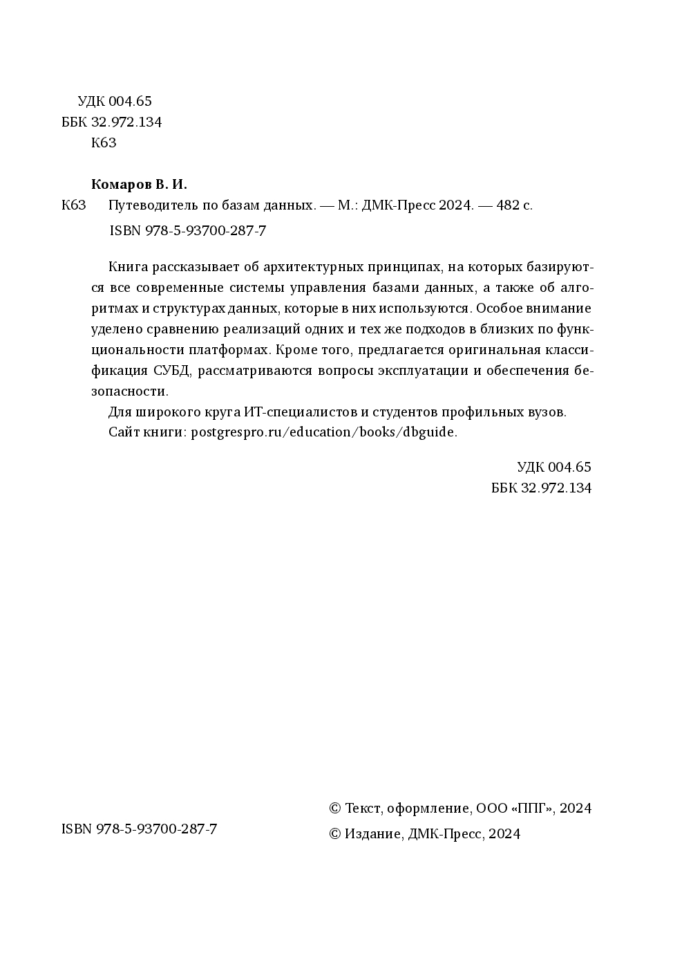 Книга рассказывает об архитектурных принципах, на которых базируются все современные системы управления базами данных, а также об алгоритмах и структурах данных, которые в них используются. Особое внимание уделено сравнению реализаций одних и тех же подходов в близких по функциональности платформах. Кроме того, предлагается оригинальная классификация СУБД, рассматриваются вопросы эксплуатации и обеспечения безопасности.