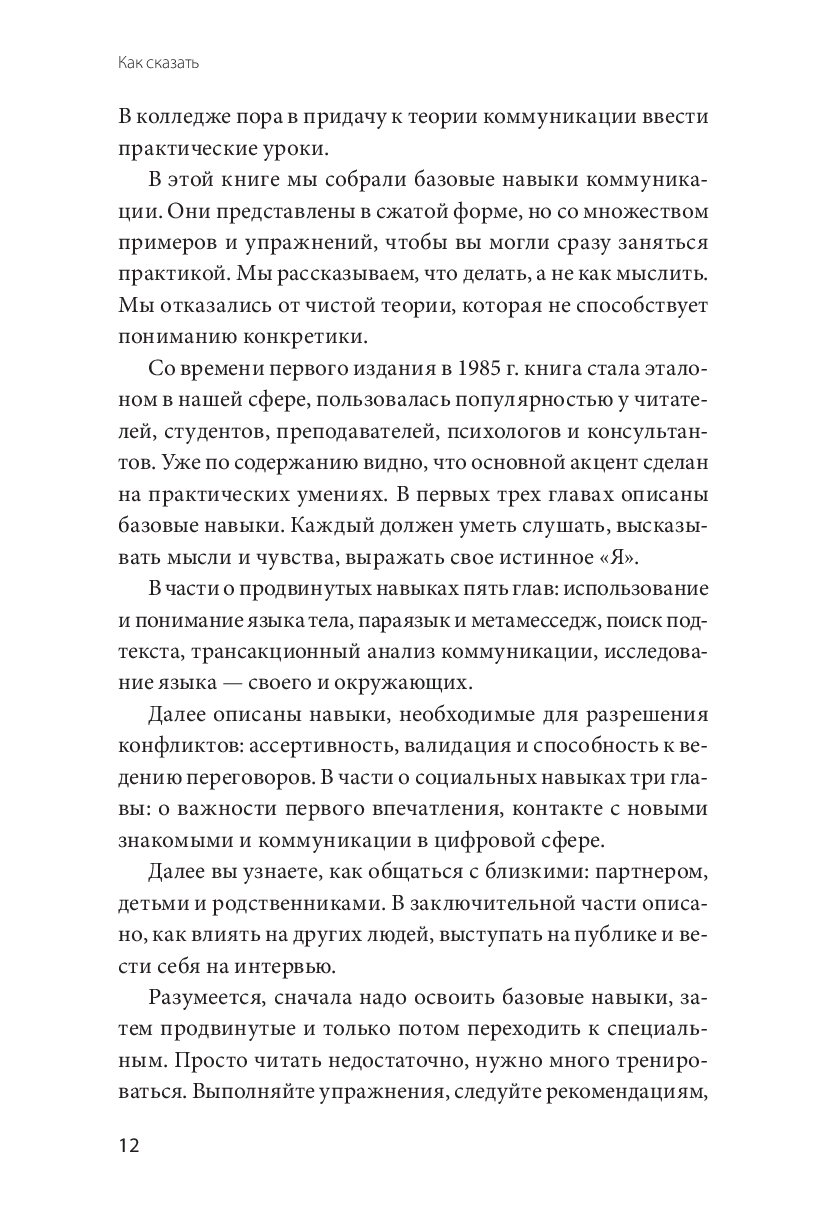 Книга "Как сказать" написана в соавторстве сооснователем издательства New Harbinger, психологом и профессиональным писателем психологических книг и с 1983-го года прошла несколько переизданий. Это фундаментальное руководство, которое научит: