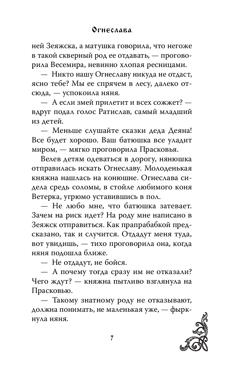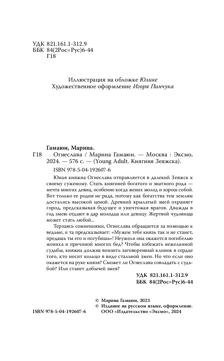 Юная княжна Огнеслава отправляется в далекий Зеяжск к своему суженому. Стать княгиней богатого и знатного рода – мечта многих девиц, особенно, когда жених молод и хорош собой. Вот только ее родня не рада, потому как богатства тем землям достались высокой ценой. Древний крылатый змей охраняет город, предсказывая будущее и уничтожая врагов. Дважды в год змею отдают в дар молодца или девицу. Жертвой чудовища может стать любой...