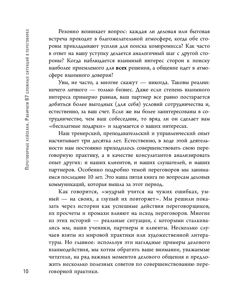 Эта книга – уникальный сборник 97 историй, в котором авторы на конкретных кейсах показывают, как успешные действия собеседников, их просчеты и промахи влияют на исход переговоров.