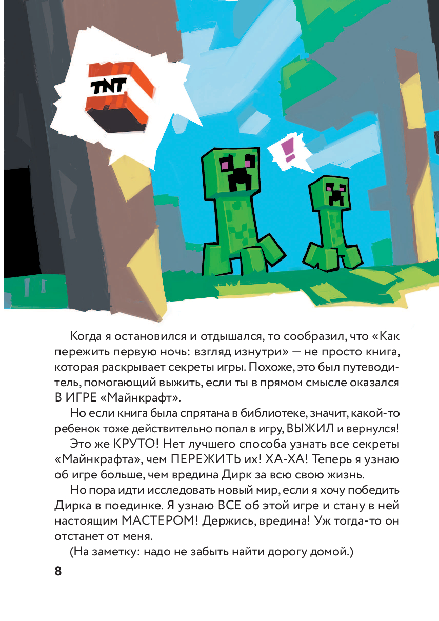 Вас ждут тонны шуток, невероятные приключения, криперы, пауки и другие герои из мира "Майнкрафт", а также цветные иллюстрации внутри!