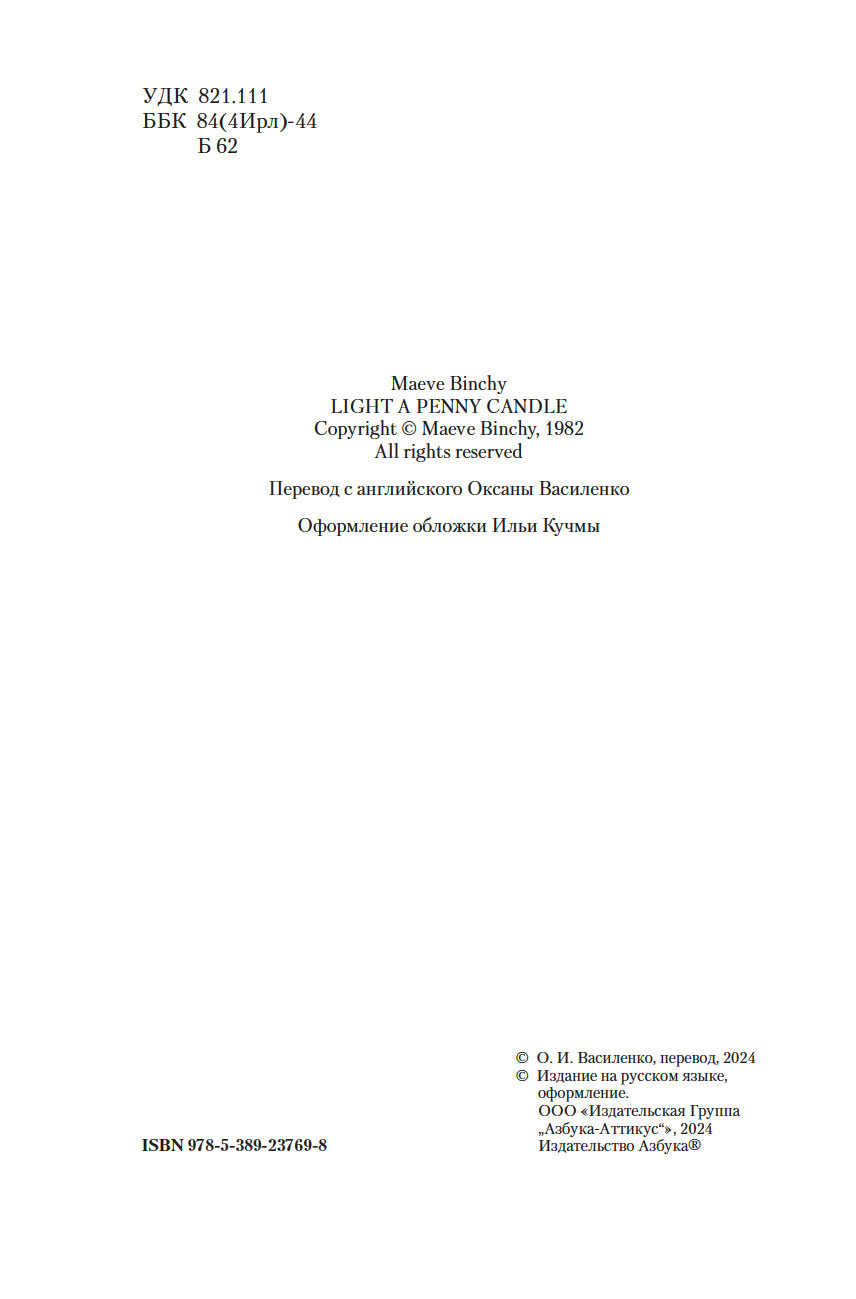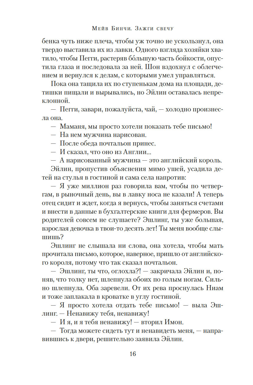 Ирландская писательница и журналистка Мейв Бинчи (1940-2012) хорошо известна не только на своей родине, но и во всем мире. Перу Бинчи, помимо рассказов, принадлежит 16 романов, ее книги неизменно становились бестселлерами и не раз получали престижные международные премии. В 1970-х годах Бинчи опубликовала три сборника рассказов, и довольно успешно, но настоящая слава пришла к ней после выхода первого романа "Зажги свечу" (1982).