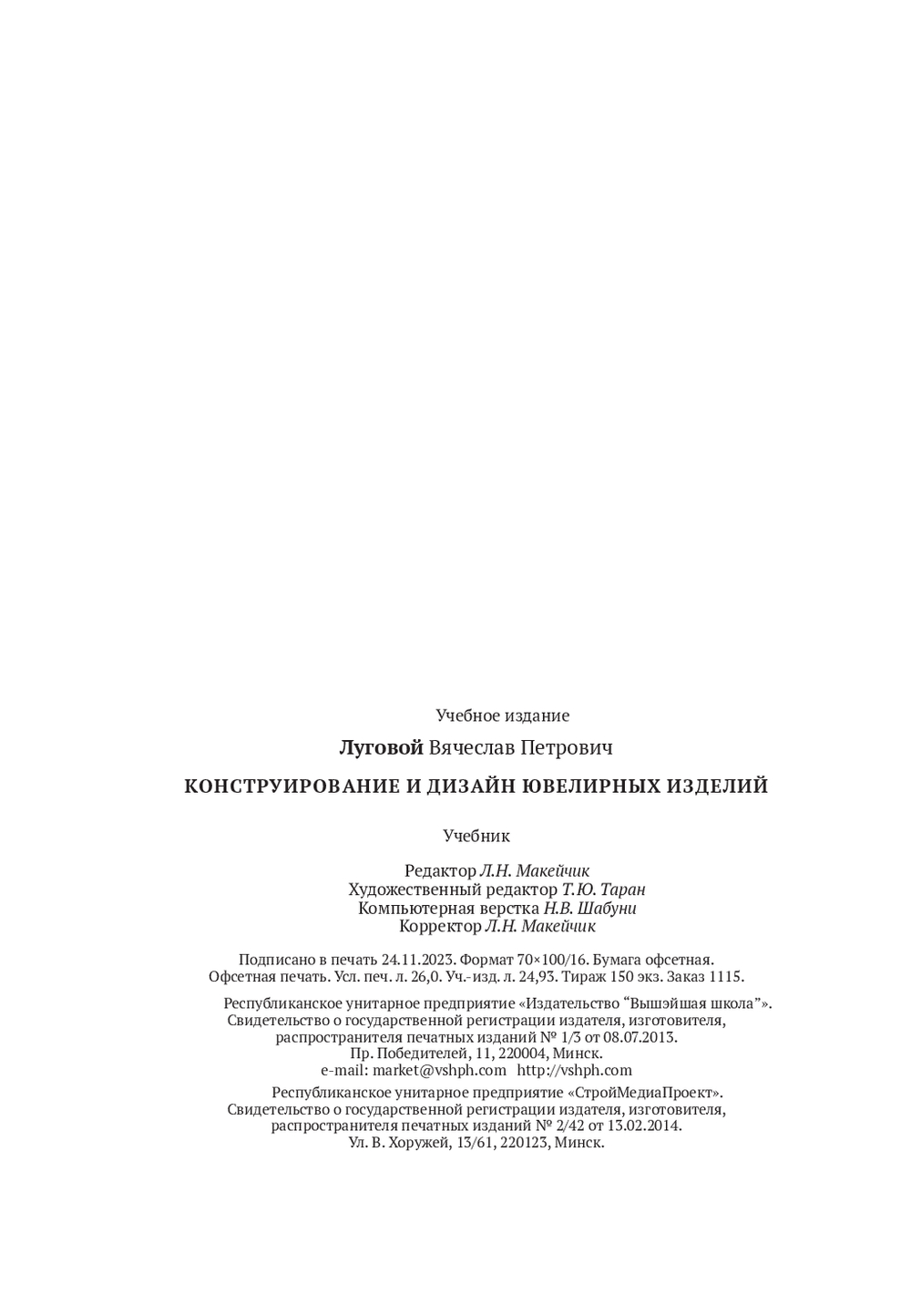 Для студентов учреждений высшего образования по специальности "Технология и оборудование ювелирного производства". Будет полезен для студентов, обучающихся по специальностям "Дизайн моды", "Технология художественной обработки материалов", а также широкого круга читателей, интересующихся красотой ювелирных украшений.