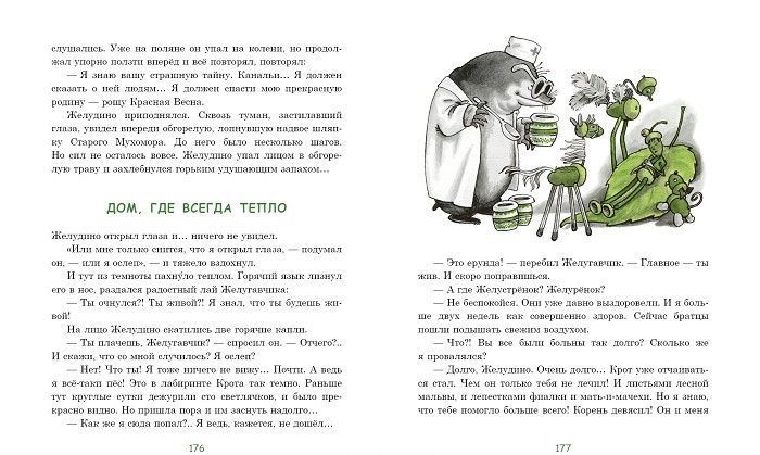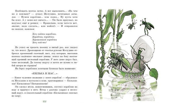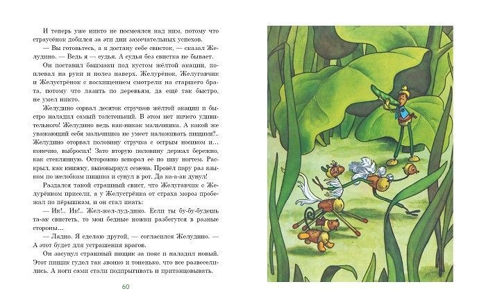Сказочная история о маленькой девочке Жене и восьми волшебных желудях. Дедушка Жени превратил их при помощи проволоки и спичек, пёрышек и тополиного пуха в мальчика Желудино, страусёнка Желустрёнка, жеребёнка Желурёнка и собачку Желугавчика, да не простых, а живых, самых настоящих. Вы узнаете, как отважные герои боролись с гусеницами в лесу, от кого спасали насекомых и птиц, что такое "Открытие Добрых Глаз" и почему так важно бережно относиться к природе.
