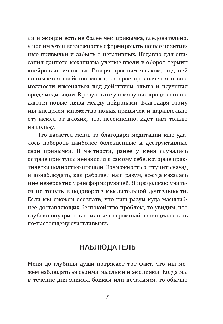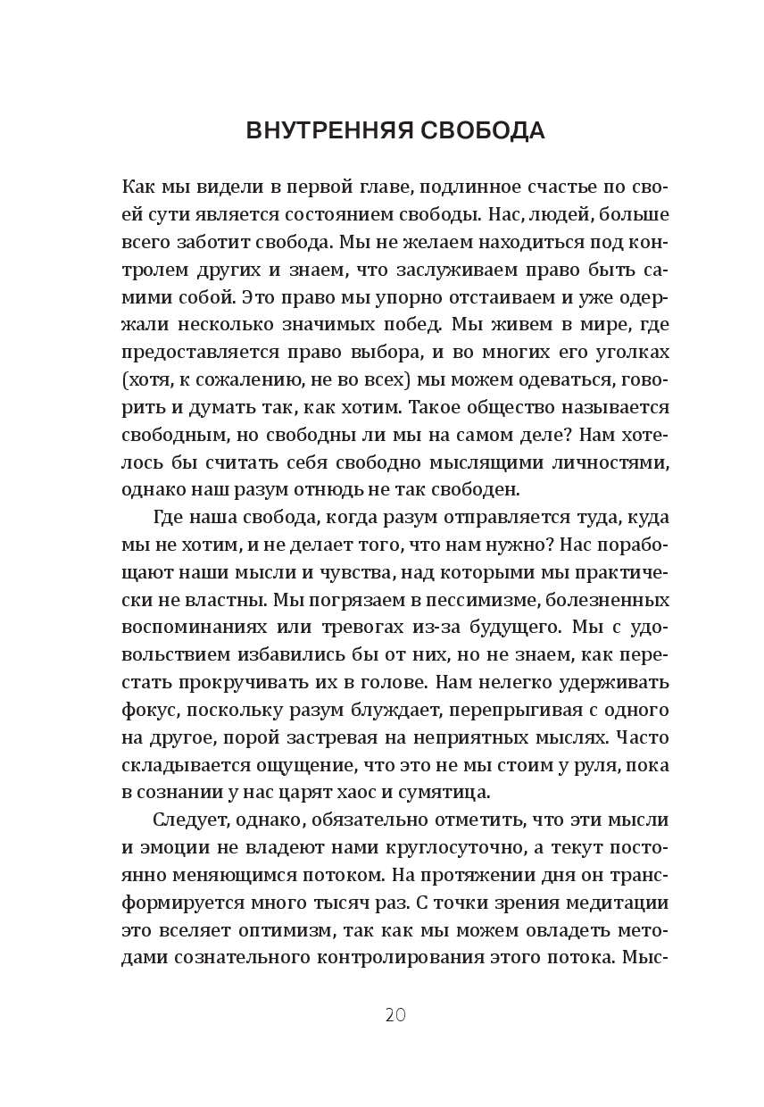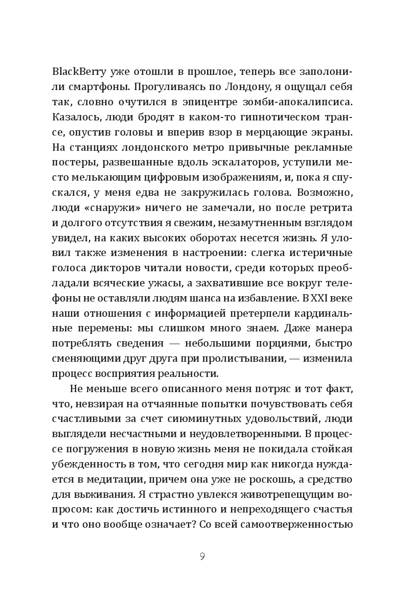 Каждый человек рожден быть счастливым. Нам всего лишь нужно разглядеть и взрастить то, что заложено в нас изначально. Благодаря Гелонгу Тубтену множество людей, от предпринимателей Кремниевой долины до обычных школьников, открыли для себя новый мир медитации. Теперь буддийский монах показывает самый короткий путь к счастью всем своим читателям, помогая кардинально изменить их мысли, эмоции и восприятие реальности. Из этой книги вы узнаете, как:
