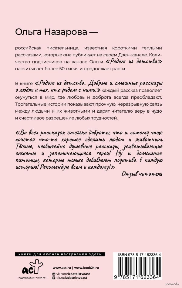 В книге "Родом из детства. Добрые и смешные рассказы о людях и тех, кто рядом с ними" каждый рассказ позволяет окунуться в мир, где любовь и доброта всегда преобладают. Трогательные истории показывают прочную, неразрывную связь между людьми и их животными и дарят читателю веру в чудо и счастливое разрешение любых трудностей.