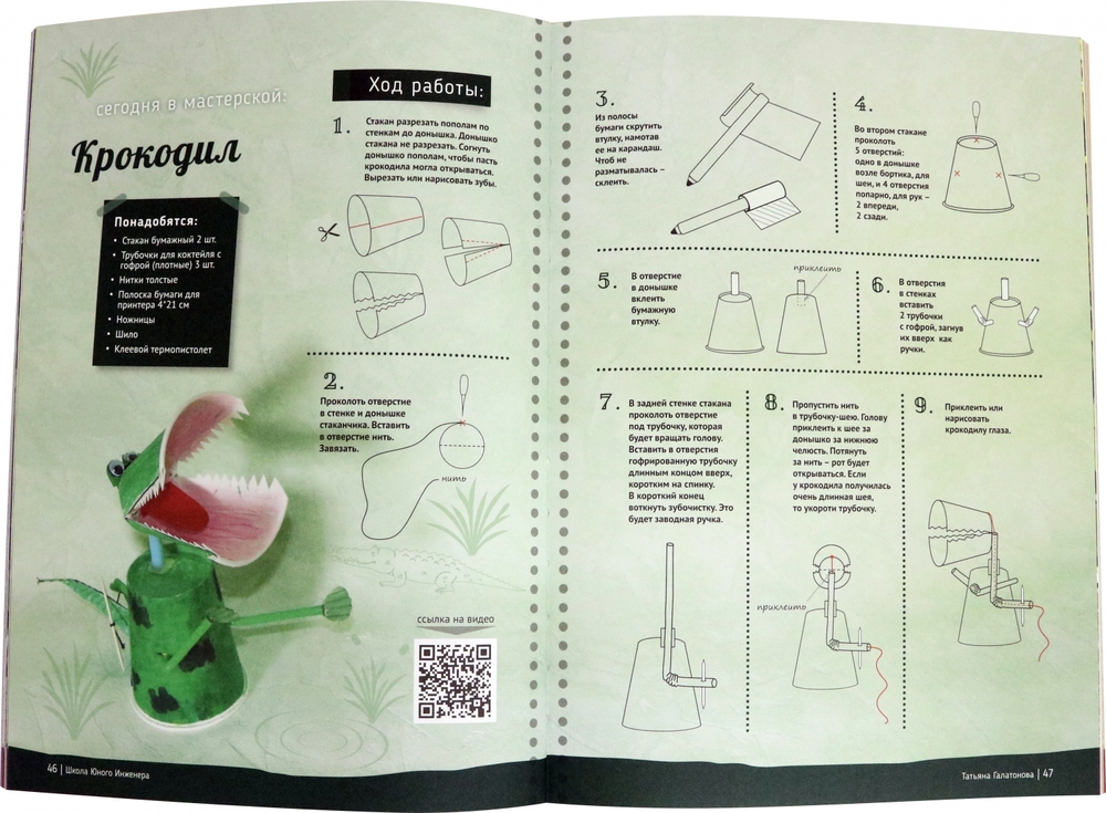 В каждом разделе несколько поделок (мастерилок). Вы узнаете название каждой мастерилки, а также найдёте её краткое описание и область применения, фото конечного результата, QR код, ведущий на видеоролик, список материалов и инструментов, подробную схему – инструкцию сборки.