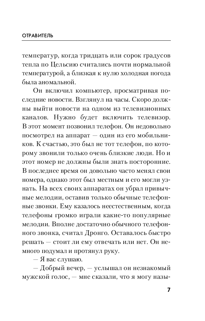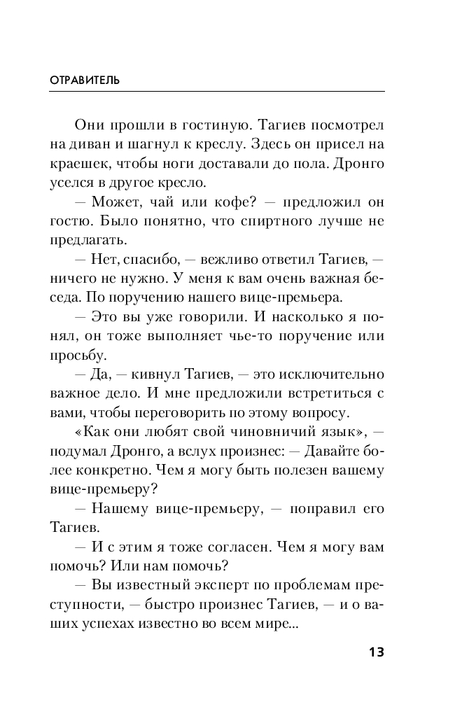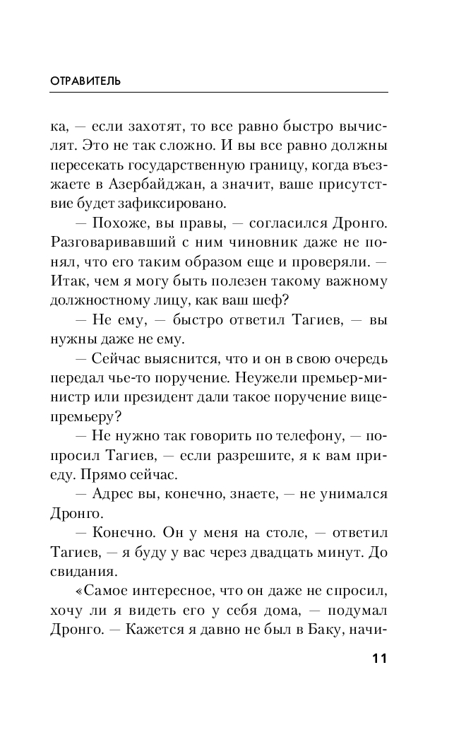 В Москве при загадочных обстоятельствах погибает арабский олигарх Вилаята Ашрафи, владелец мощной строительной компании. Тайну его смерти в течение нескольких месяцев пытались разгадать ведущие мировые криминалисты, однако эти попытки не увенчались успехом... Вилаята один вошел в свою квартиру, заперся изнутри и почти сразу же умер. Медики установили: олигарх был отравлен, но кем, чем, как и когда – неизвестно... Партнеры Ашрафи, наслышанные о выдающихся способностях знаменитого эксперта-аналитика, обращаются к Дронго с последней надеждой. Но тот не спешит браться за расследование – такие преступления нужно раскрывать по горячим следам. Однако когда его посвящают в курс дела, он меняет свое решение – уж больно заманчиво все выглядит. Но задание оказалась опаснее, чем он думал: преступник уже приготовил порцию своего таинственного яда для любого, кто попытается выйти на его след...