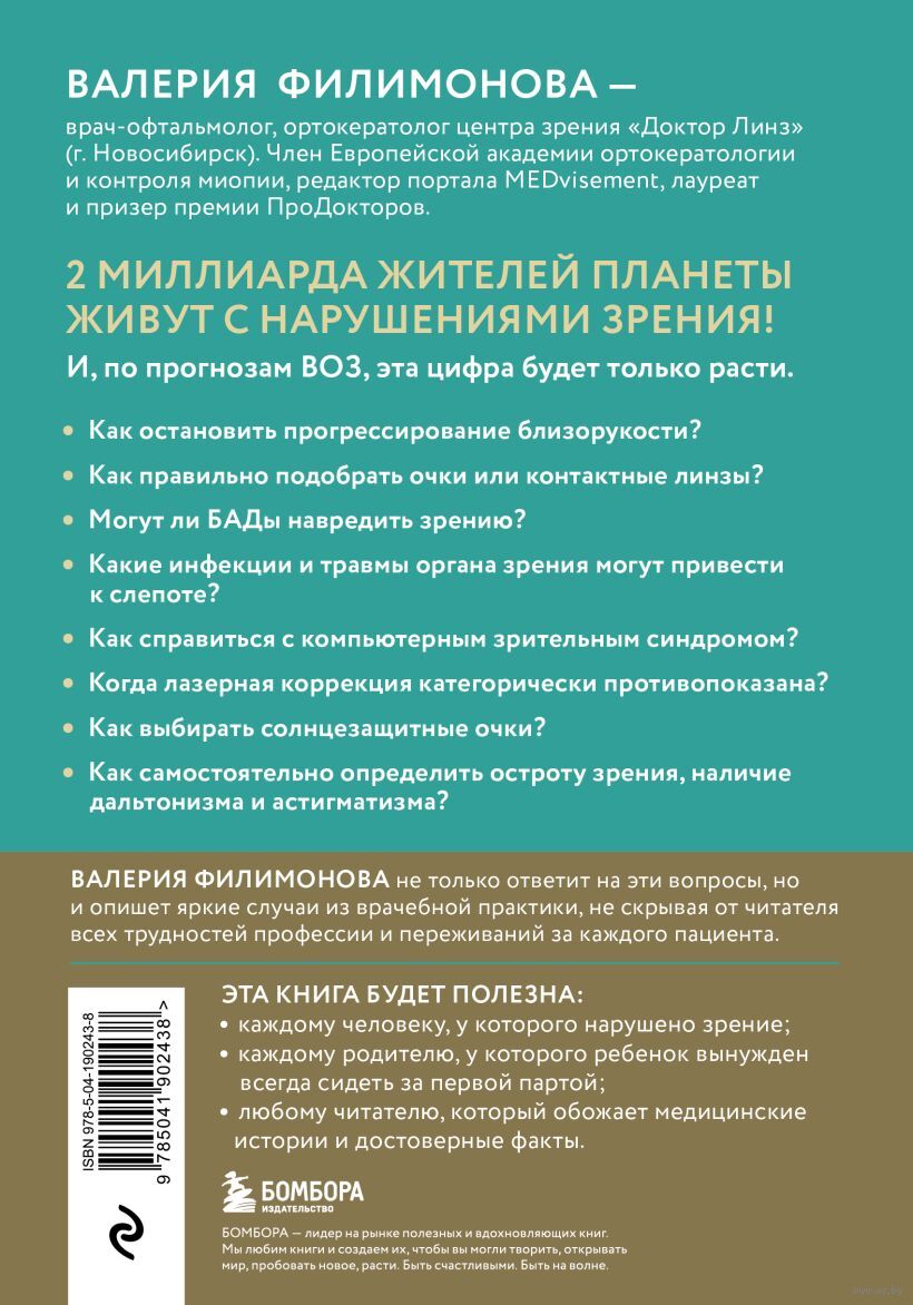 В этой книге врач-офтальмолог Валерия Филимонова расскажет, как лечить заболевания глаз, какие инфекции и травмы могут привести к слепоте и как можно остановить прогрессирование близорукости и дальнозоркости.
