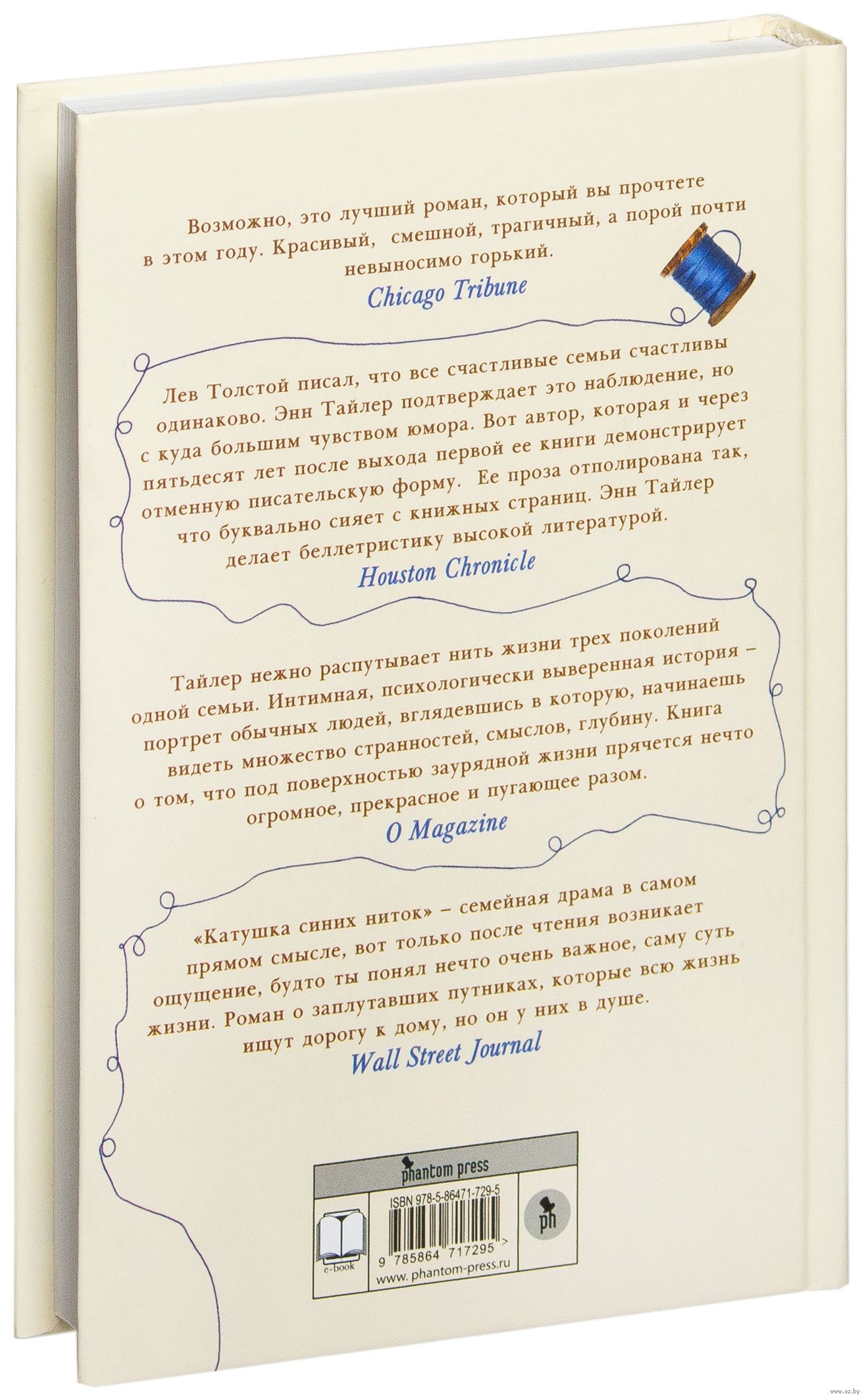 Уитшенки всегда удивляли своей сплоченностью и едва уловимой особостью. Это была семья, которой все по-хорошему завидовали. Но, как и у каждой семьи, у них была и тайная, скрытая от глаз реальность, которую они и сами-то толком не осознавали. Эбби, Ред и четверо взрослых детей в своем багаже имеют не только чудесные воспоминания о радости, смехе, семейных праздниках, но и разочарования, ревность, тщательно оберегаемые секреты. В романе Энн Тайлер, одной из лучших современных писательниц, разворачивается история трех поколений одной семьи — трогательная, но совсем не сентиментальная, драматичная, но ироничная, очень глубокая, но простая.Энн Тайлер иногда называют северной Фэнни Флэгг, но ее истории гораздо ближе рассказам А.П.Чехова — тонкие, грустные, забавные и невероятно глубокие. Она рассказывает их тихим, чуть насмешливым голосом, и они еще долго резонируют в душе, о них думаешь, и собственная жизнь предстает в новом свете — куда более наполненной смыслами. Иные книги вспыхиваютослепительными фейерверками, но быстро гаснут, оставляя после себя черное небо, в котором светятся редкие, но настоящие звезды — среди которых и романы Энн Тайлер.Энн Тайлер — лауреат Пулитцеровской премии, Катушка синих ниток в 2015 году номинировался на премию Букер.