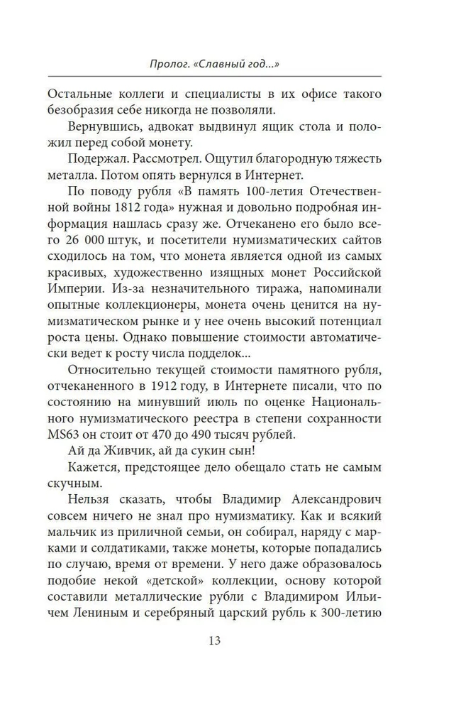 Термин нумизматов "убитая монета" означает монету, утратившую в процессе обращения признаки подлинности. На одном из крупнейших европейских аукционов неожиданно выставляются редкие и очень дорогие российские монеты из коллекции, которая долгие годы считалась утраченной. На коллекцию сразу же начинают претендовать и законные наследники последнего известного владельца, и могущественный олигарх, утверждающий, что он выкупил ее в свое время, и даже бывшие сотрудники советской внешней разведки. Однако новые обладатели драгоценных монет также не намерены отказываться от своих прав, и вся эта история начинает затрагивать интересы могущественных аукционных домов и европейских спецслужб...