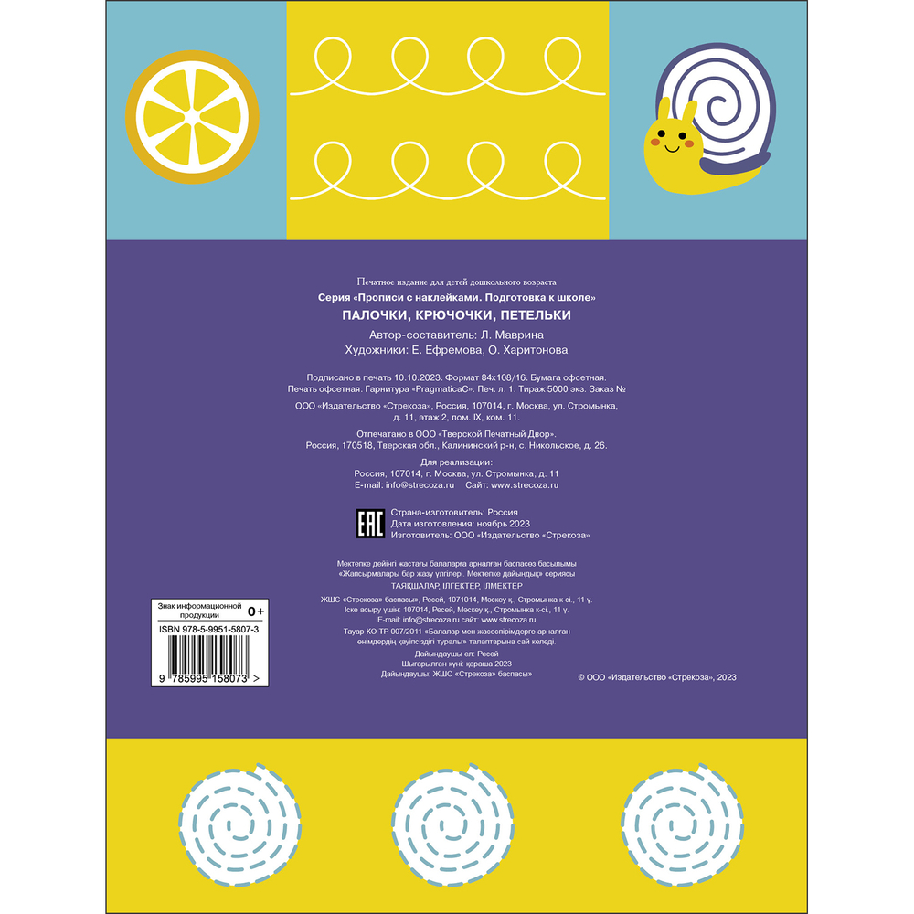 Эти прописи помогут вам подготовить руку ребёнка к письму. Предложенные упражнения направлены на развитие мелкой моторики, улучшение координации и овладение графическими навыками. А яркие наклейки помогут превратить процесс обучения в увлекательную игру. Во время занятий по этой книге ребёнок будет учиться аккуратно рисовать разные палочки, крючочки и петельки. Регулярно занимаясь с ребёнком, вы увидите, как он постепенно овладевает новыми графическими навыками.