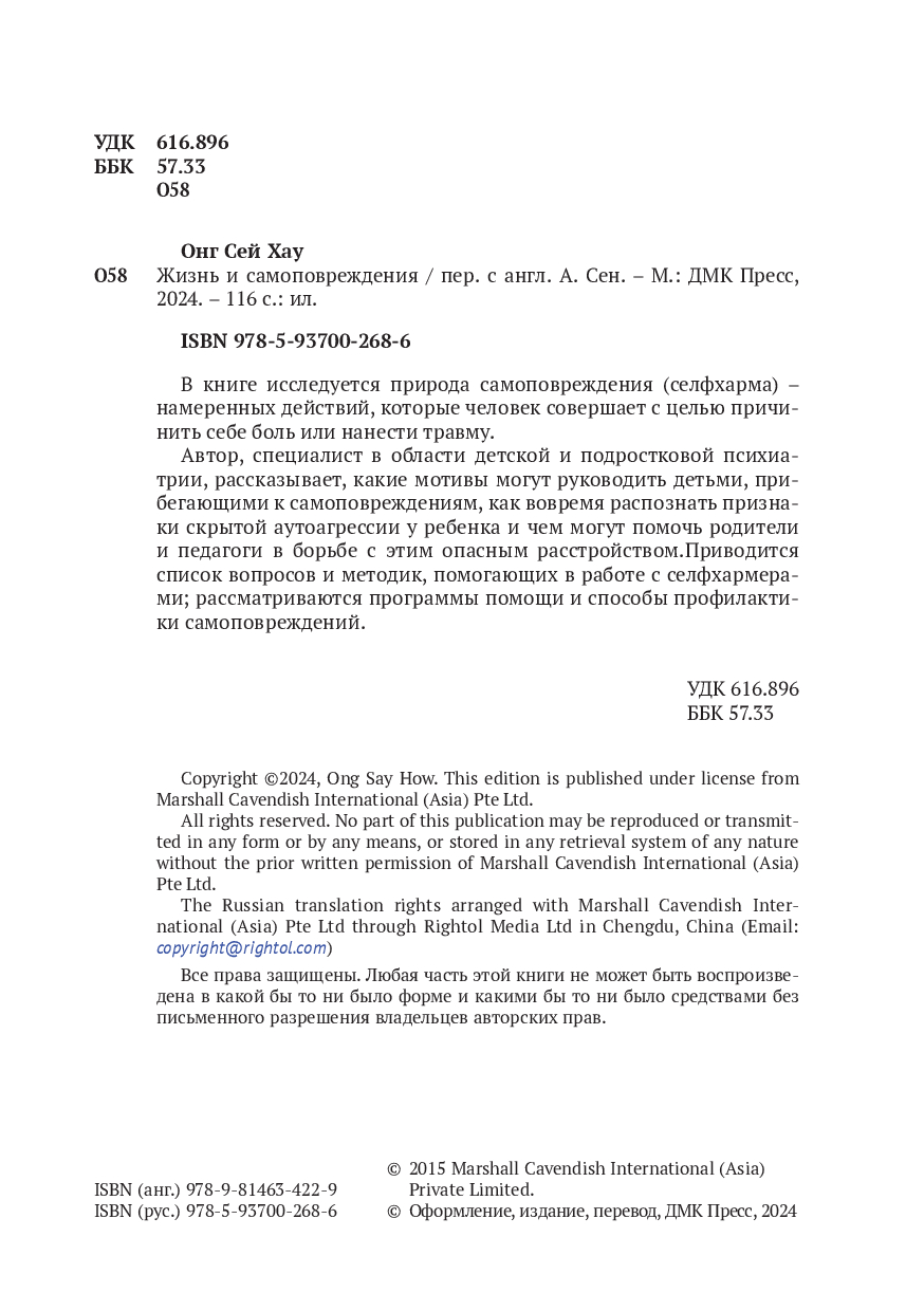 Автор, специалист в области детской и подростковой психиатрии, исследует причины, по которым дети и молодые люди могут наносить себе вред, и рассказывает о методах эффективной терапии.