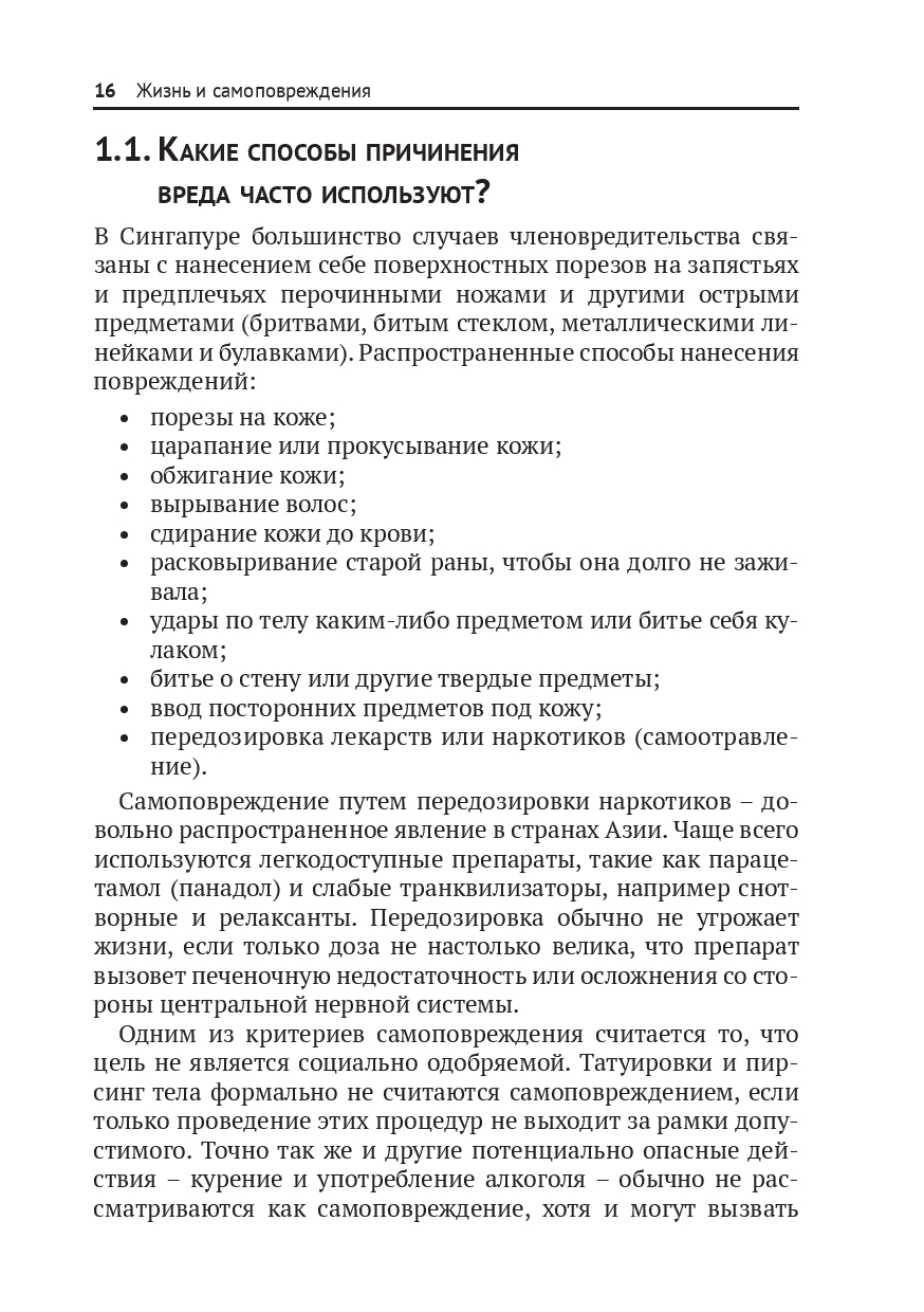 Книга, которую вы держите в руках, посвящена проблемам самоповреждений (селфхарма). Под этим термином понимается широкий спектр действий, которые люди совершают намеренно, чтобы причинить себе боль или нанести травму.