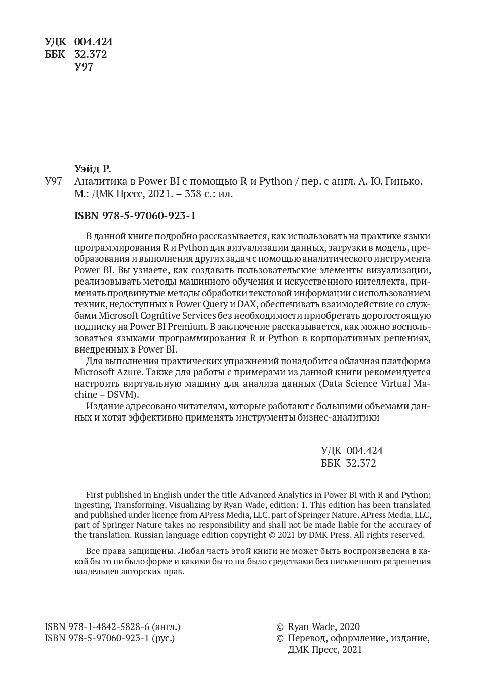 | Название в оригинале | Advanced Analytics in Power BI with R and Python |