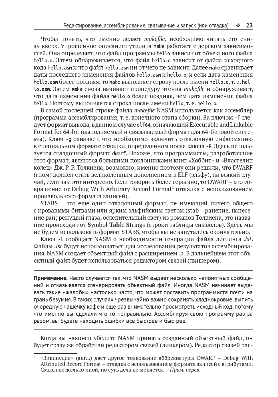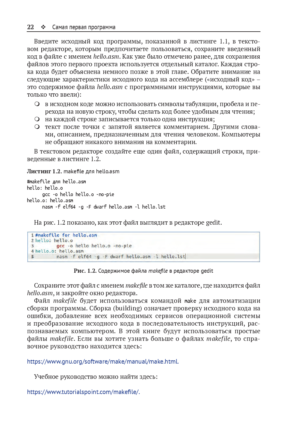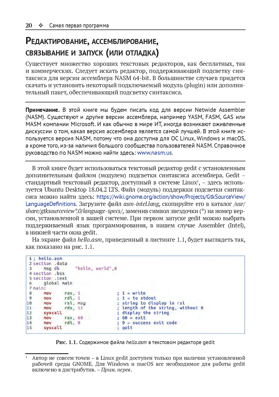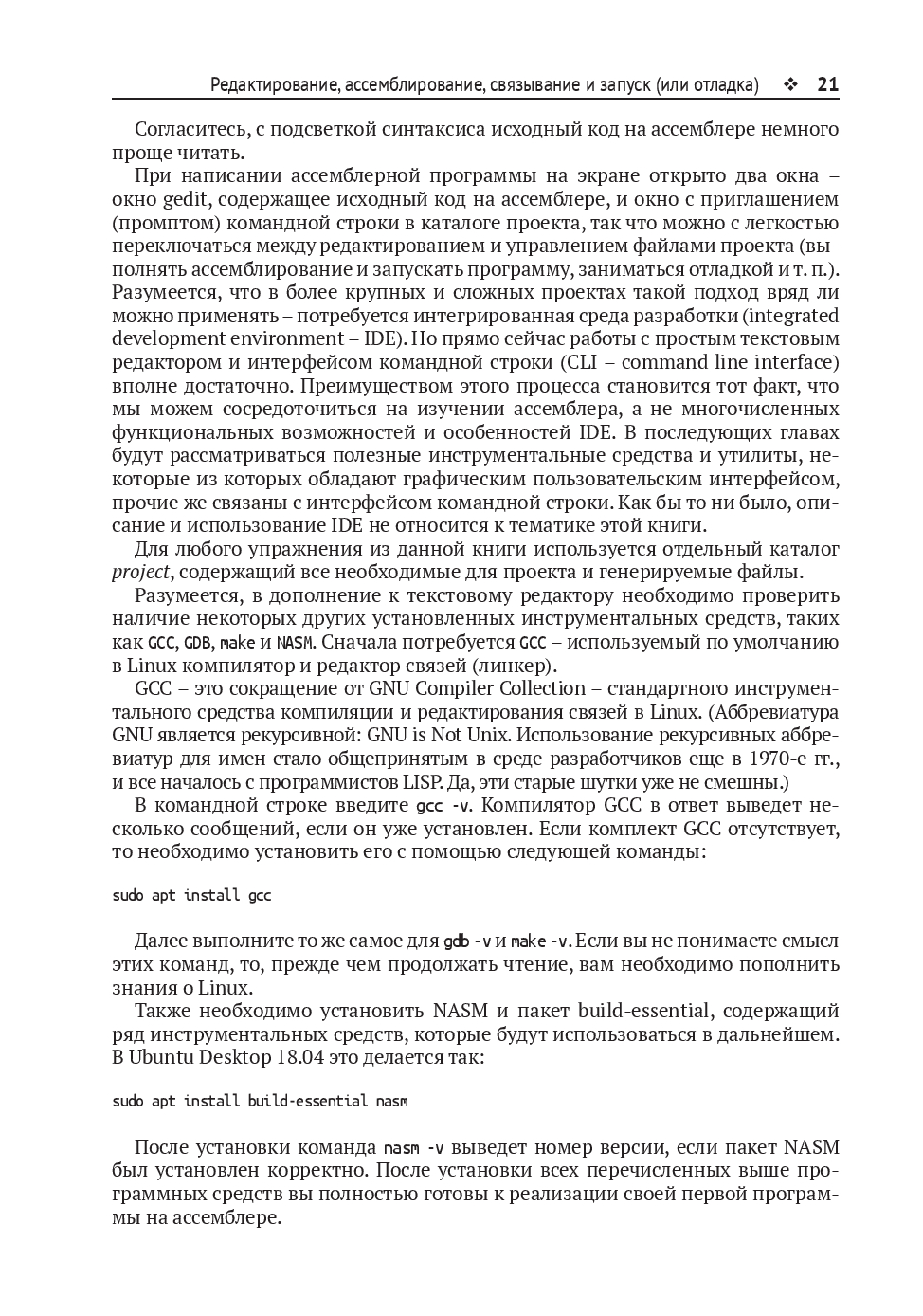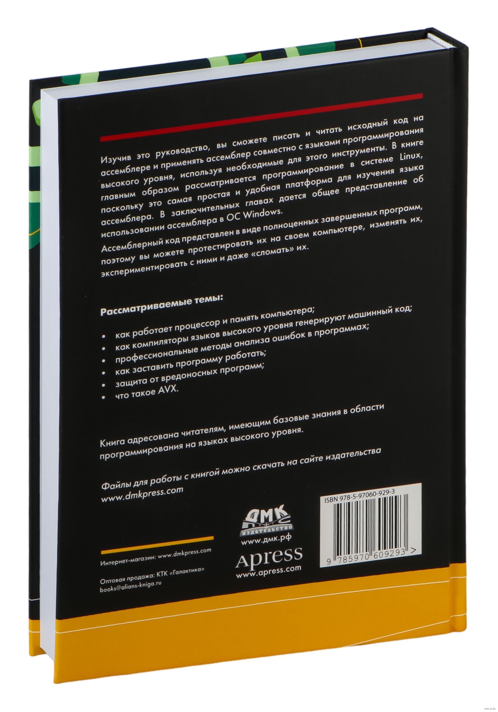Изучив это руководство, вы сможете писать и читать исходный код на ассемблере и применять ассемблер совместно с языками программирования высокого уровня, используя необходимые для этого инструменты. В книге главным образом рассматривается программирование в системе Linux, поскольку это самая простая и удобная платформа для изучения языка ассемблера. В заключительных главах даётся общее представление об использовании ассемблера в ОС Windows.