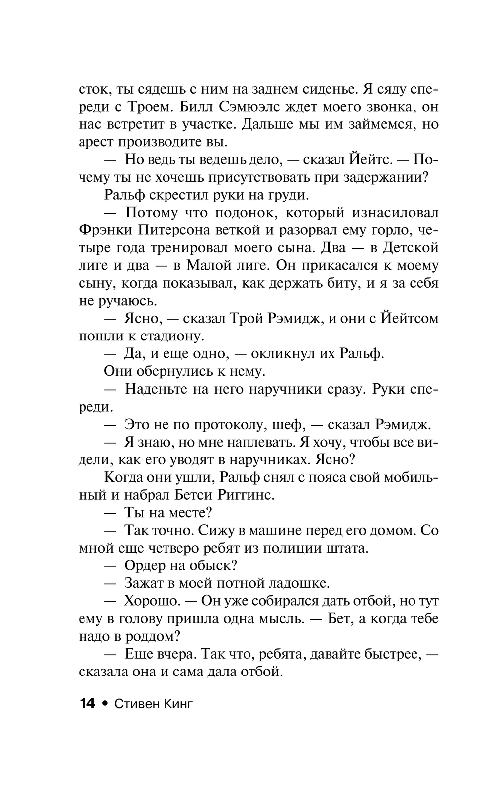 В парке маленького городка Флинт-Сити найден труп жестоко убитого одиннадцатилетнего мальчика. Все улики указывают на одного человека – Терри Мейтленда. Тренер молодежной бейсбольной команды, преподаватель английского, муж и отец двух дочерей – неужели он способен на такое?
