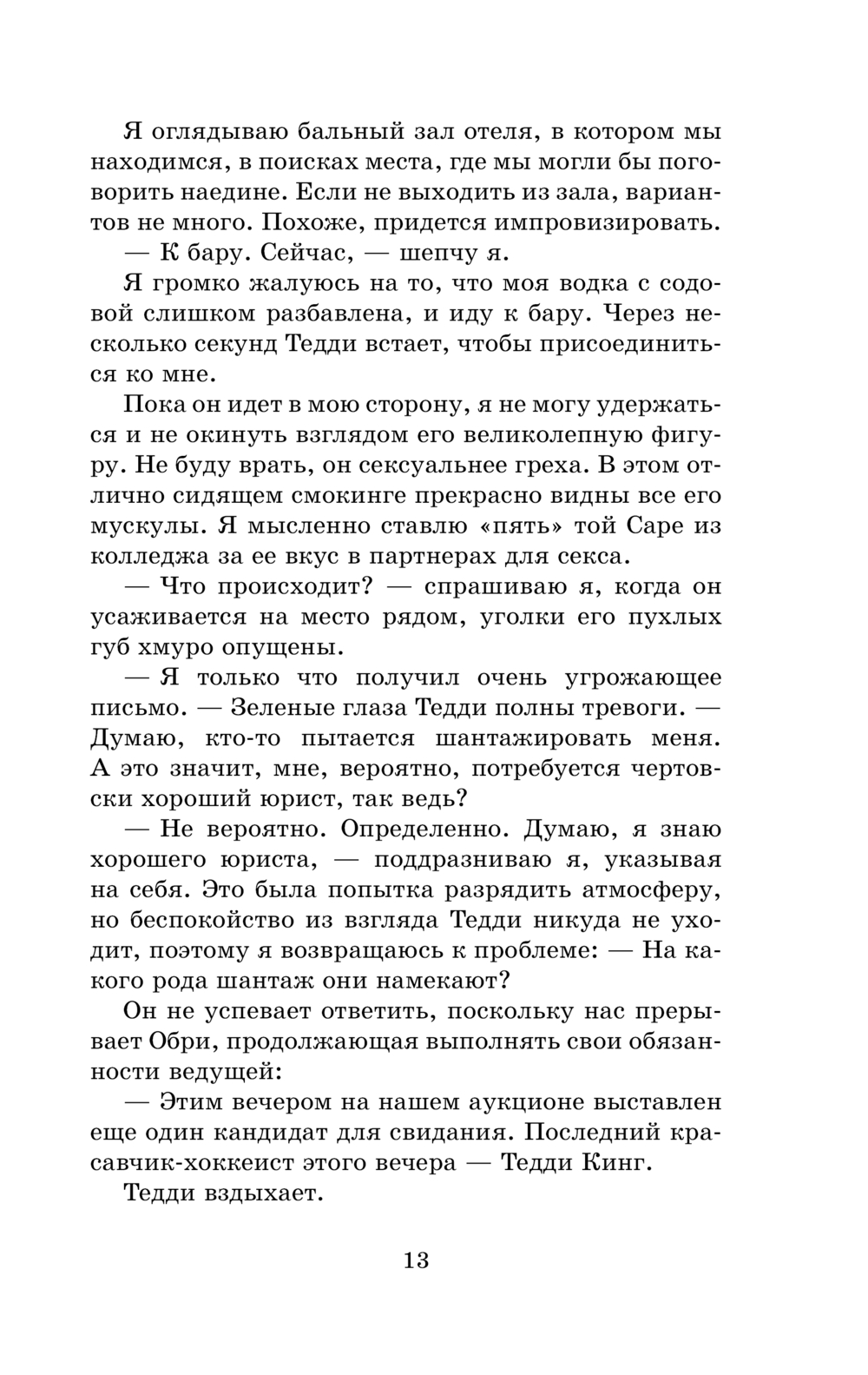 Я – Сара Доусон, перегруженный работой адвокат. Да, порой я очень устаю, но по крайней мере последнее дело было интересным. Меня нанял мой друг Тедди Кинг, чтобы помочь сохранить в тайне домашнее видео, которое он снял много лет назад. А, учитывая, что Тедди – профессиональный хоккеист с мировым именем и огромным количеством поклонников, нельзя было допустить, чтобы подобное стало достоянием общественности.