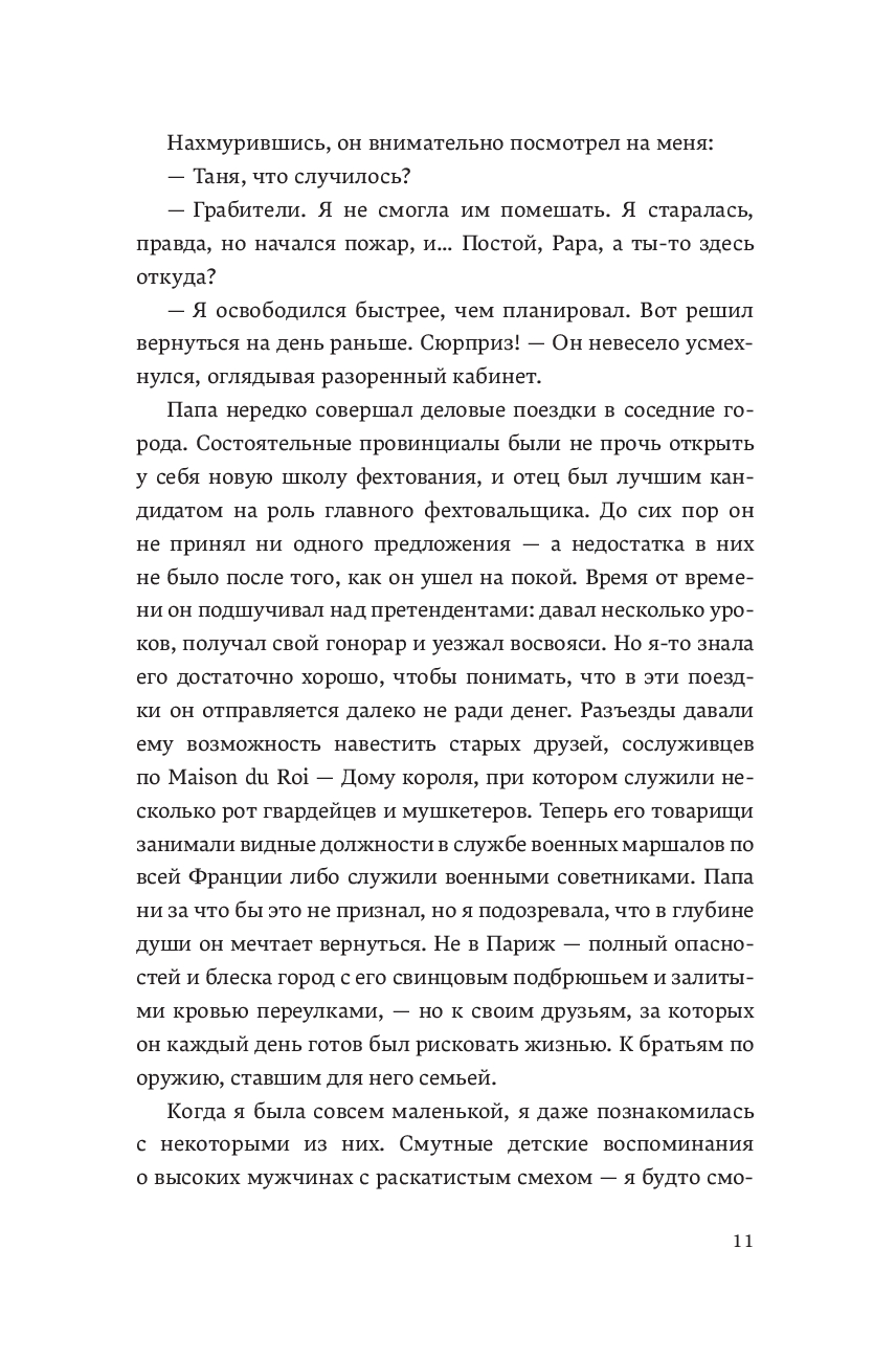 В Академии Таня наконец обретает верных подруг и благородную цель. В стране недавно утихла смута, и заговорщики, недовольные властью Людовика XIV, снова плетут интриги. Юным мушкетеркам предстоит выяснить, что они задумали. Но Тане не дает покоя тайна смерти отца. Сможет ли она ради долга оставить мысли о мести? Или ей не придется выбирать?