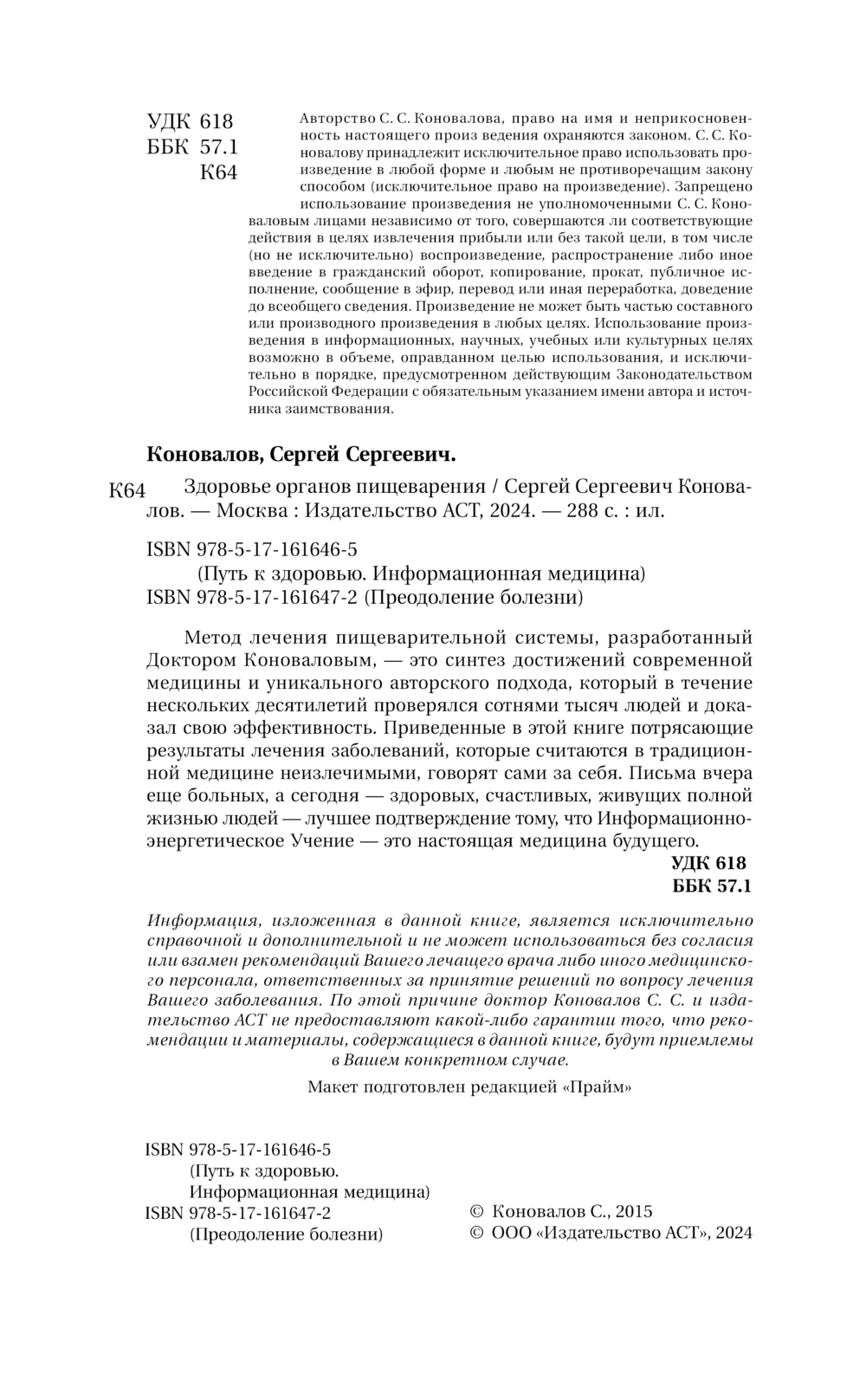 "Эта книга Сергея Сергеевича Коновалова, посвященная вопросам здоровья пищеварительной системы человека, необходима как тем, кто уже столкнулся с заболеваниями органов пищеварения, хочет вылечиться сам и помочь своим родным и близким быть здоровыми, так и тем, кто хочет предотвратить развитие нарушений работы ЖКТ и научиться жить насыщенной, активной и интересной жизнью.
