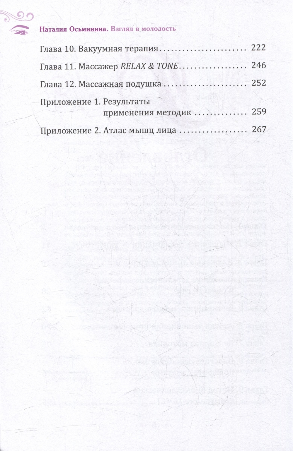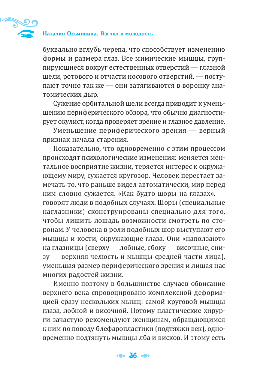 Наталия Осьминина – автор революционного метода омоложения с помощью расслабления мышечного тонуса, который помогает сохранить естественную красоту за счёт ресурсов организма, раз и навсегда отказавшись от инъекций и пластики. Её новый комплекс методик "Взгляд в молодость" предлагает вам уникальные и эффективные способы омоложения области глаз и физиологической регенерации орбитальной зоны лица. С помощью Осьмионики вы сможете подтянуть опавшие веки, восстановить форму и размер глаз, приподнять брови, уменьшить морщины на лбу, отёки и мешки под глазами, обеспечив эффект лифтинга лобной, скуловой и височной областей. Этих результатов вы добьётесь благодаря знанию причинно-следственных связей процессов старения лица.