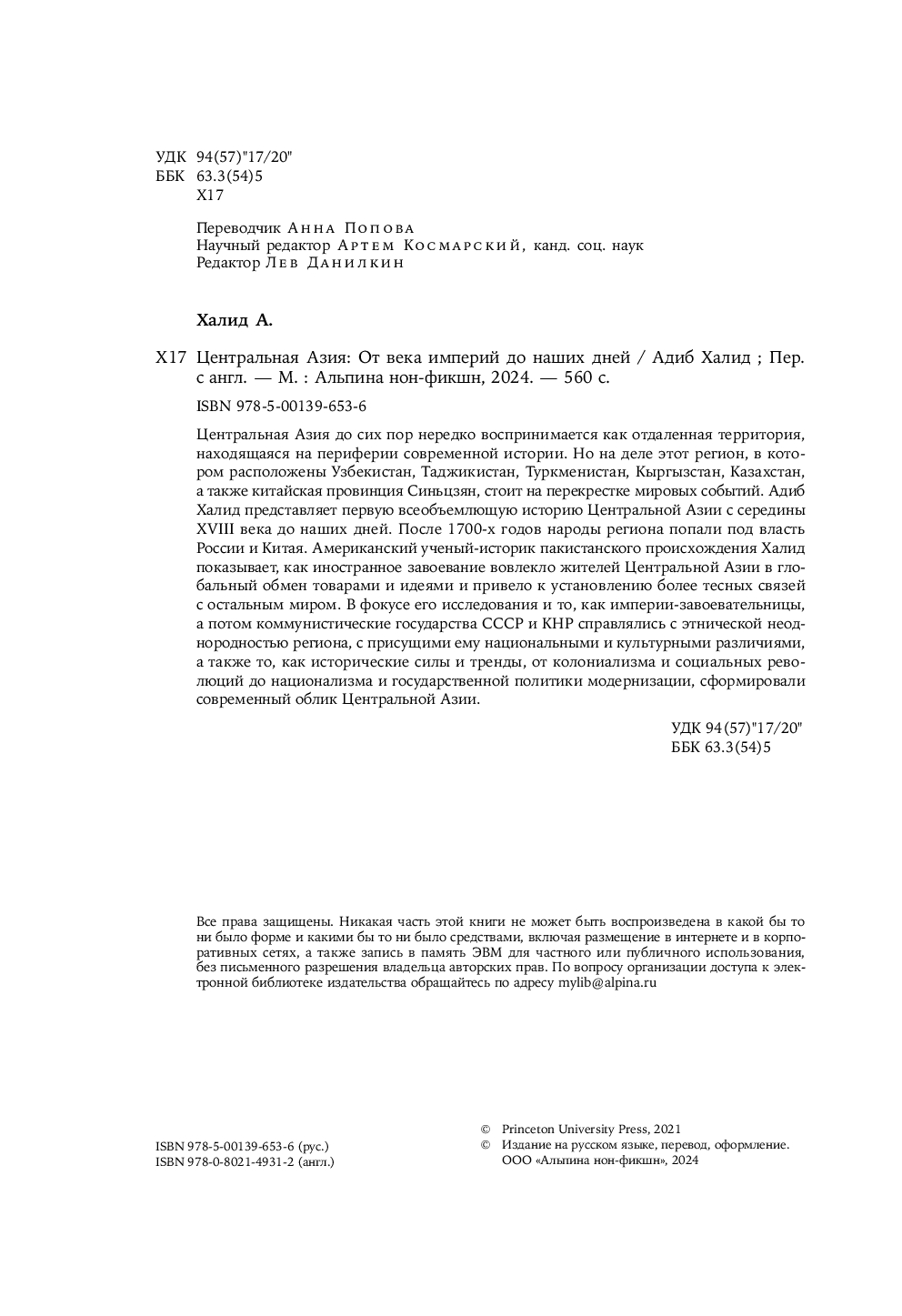 | Название в оригинале | Central Asia: A New History from the Imperial Conquests to the Pesent |