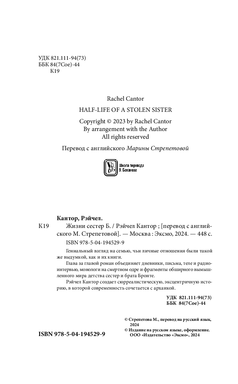 | Изготовитель | ООО «Издательство «Эксмо», Россия, 123308, город Москва, улица Зорге, дом 1, строение 1, этаж 20, каб 2013 |