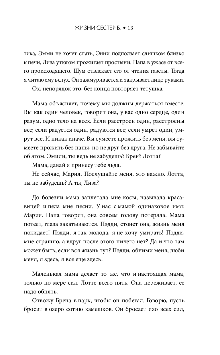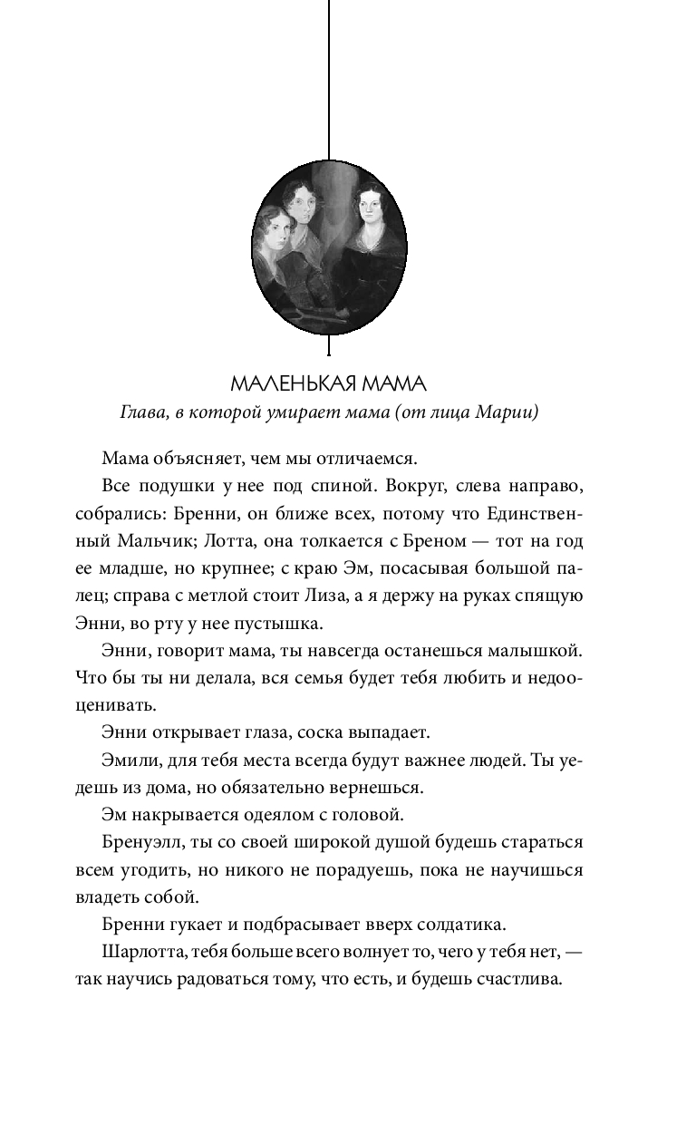 Глава за главой роман объединяет дневники, письма, теле- и радиоинтервью, монологи на смертном одре и фрагменты обширного вымышленного мира детства сестер и брата Бронте.
