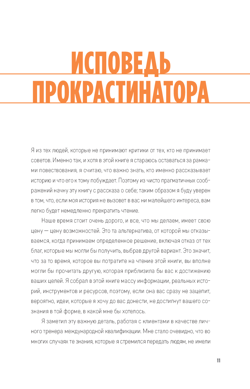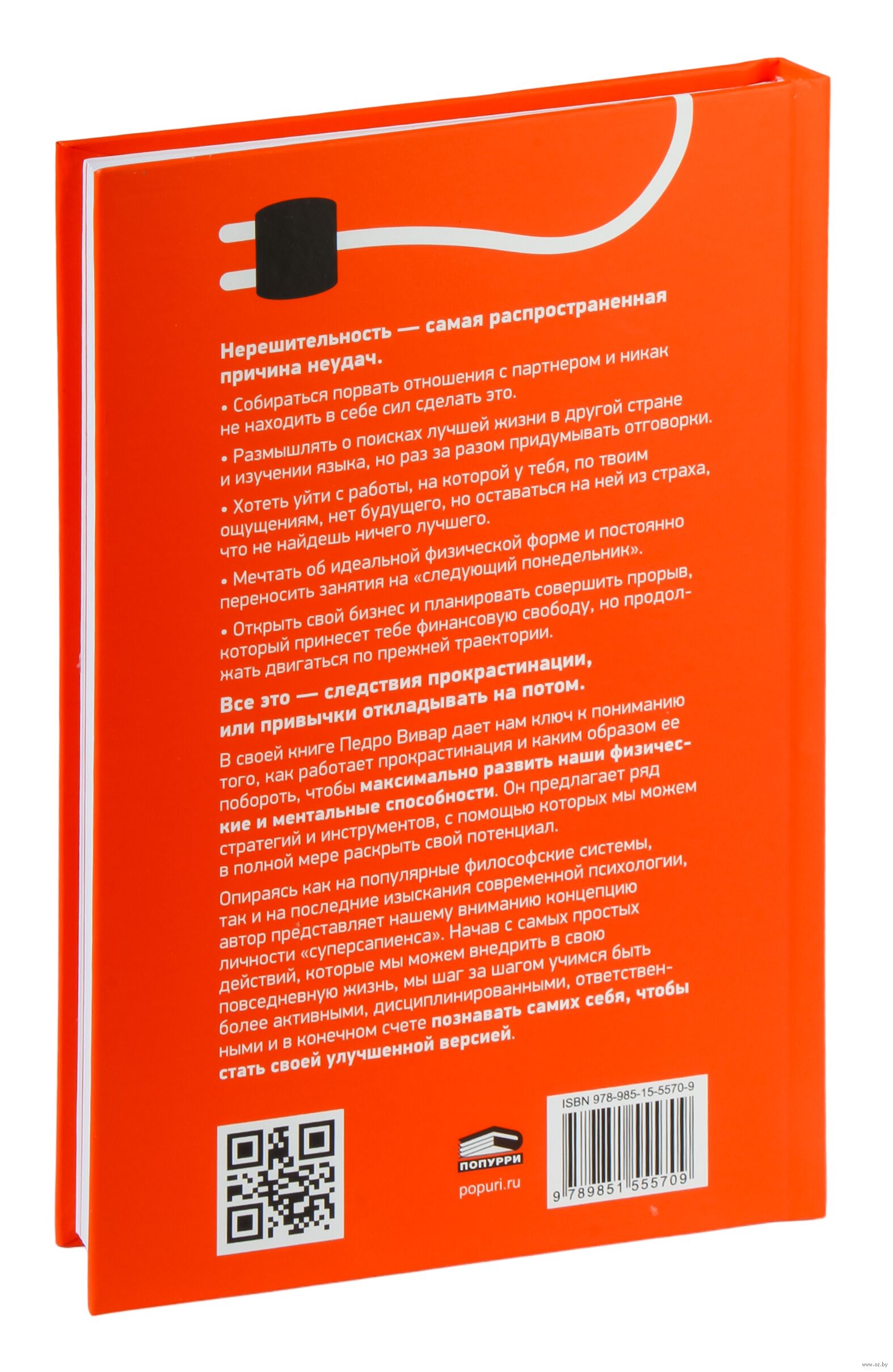 В своей книге Педро Вивар дает нам ключ к пониманию того, как работает прокрастинация и каким образом ее побороть, чтобы максимально развить наши физические и ментальные способности. Он предлагает ряд стратегий и инструментов, с помощью которых мы можем в полной мере раскрыть свой потенциал.